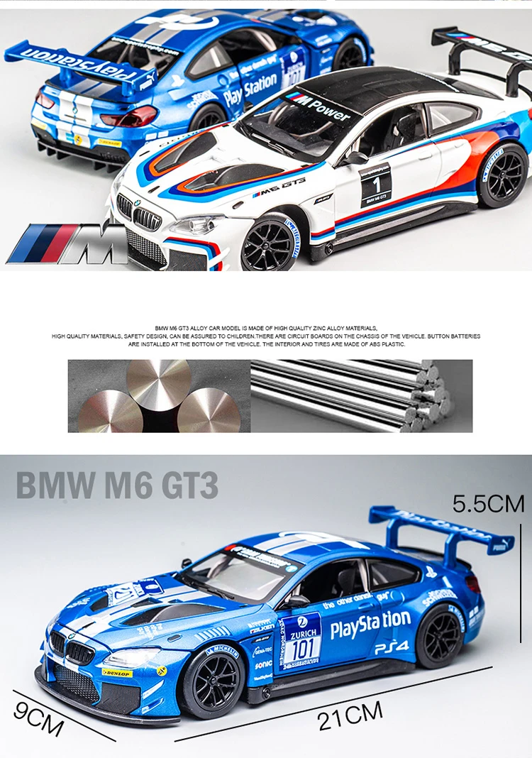 Гоночный автомобиль 1:24 M6 GT3 M4 DTM Le Mans, свободный ход, высокая легкость, спортивный гоночный автомобиль, модель игрушки, литая под давлением, металлический сплав, миниатюрная копия