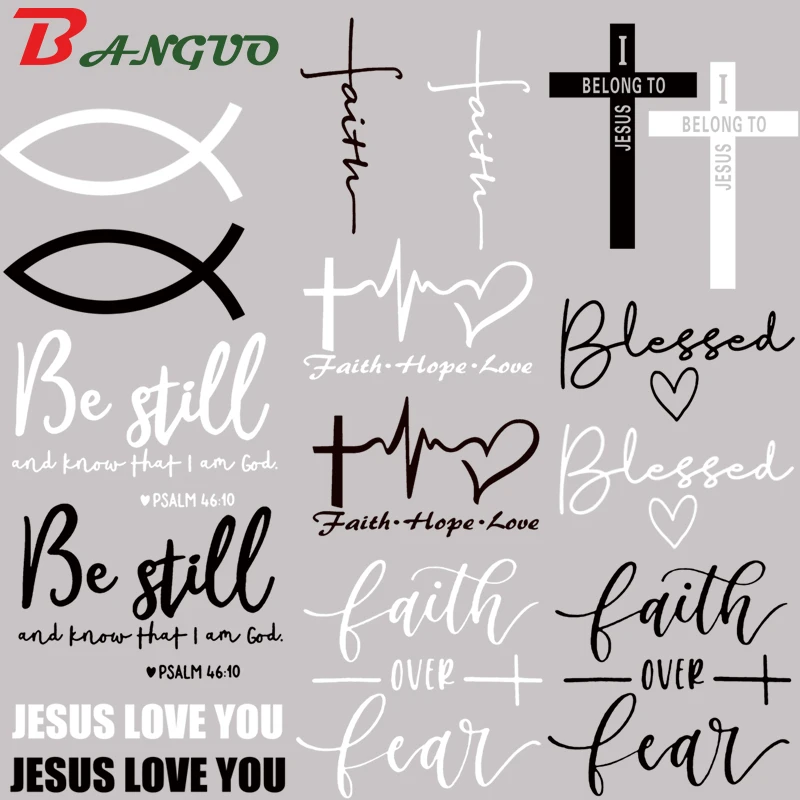 Термонаклейки с крестом Иисуса, с надписью Вера, Надежда, любовь