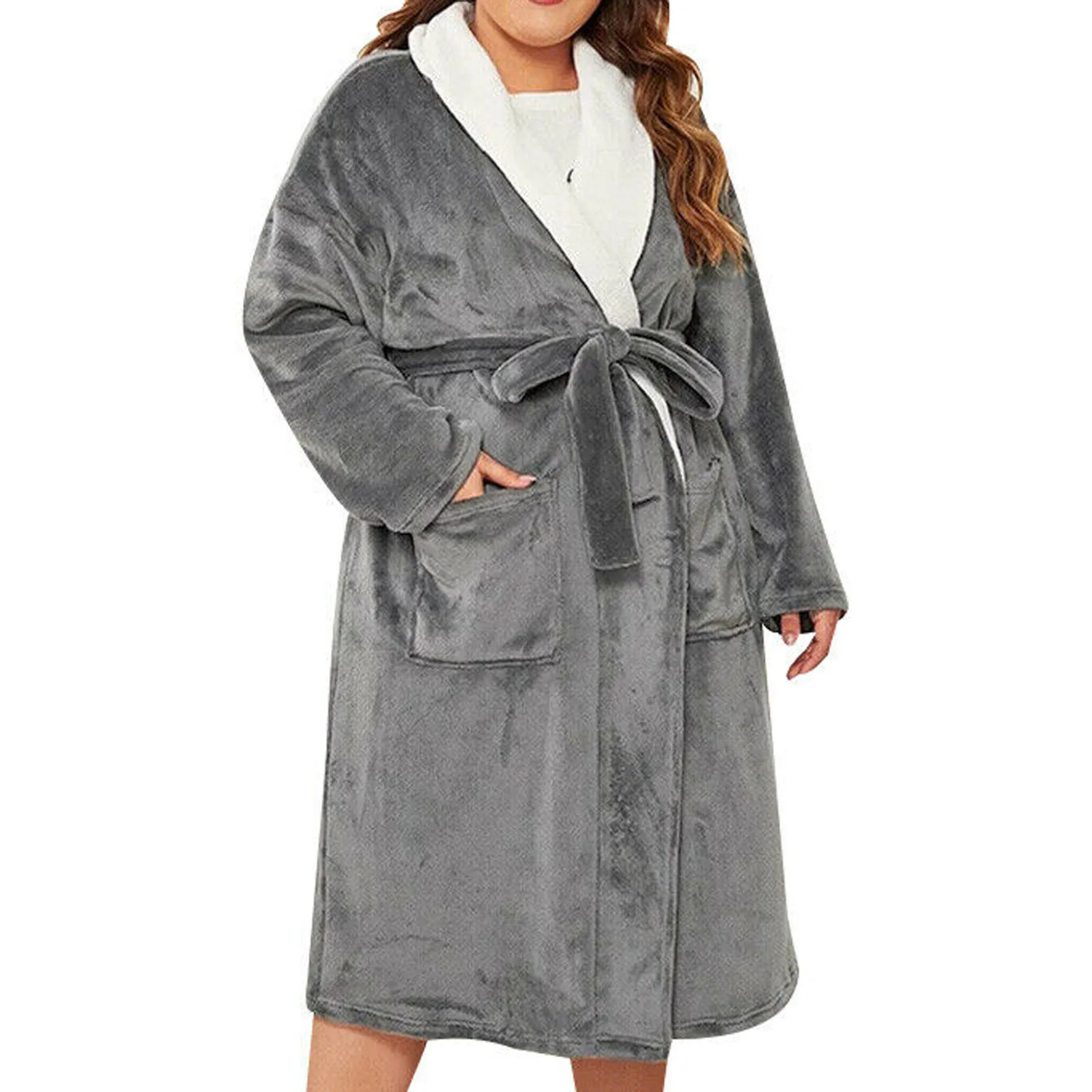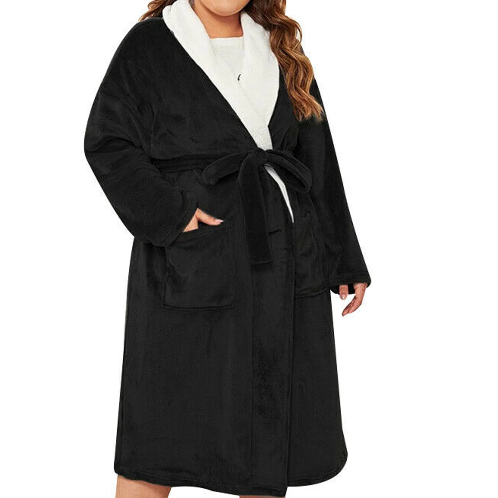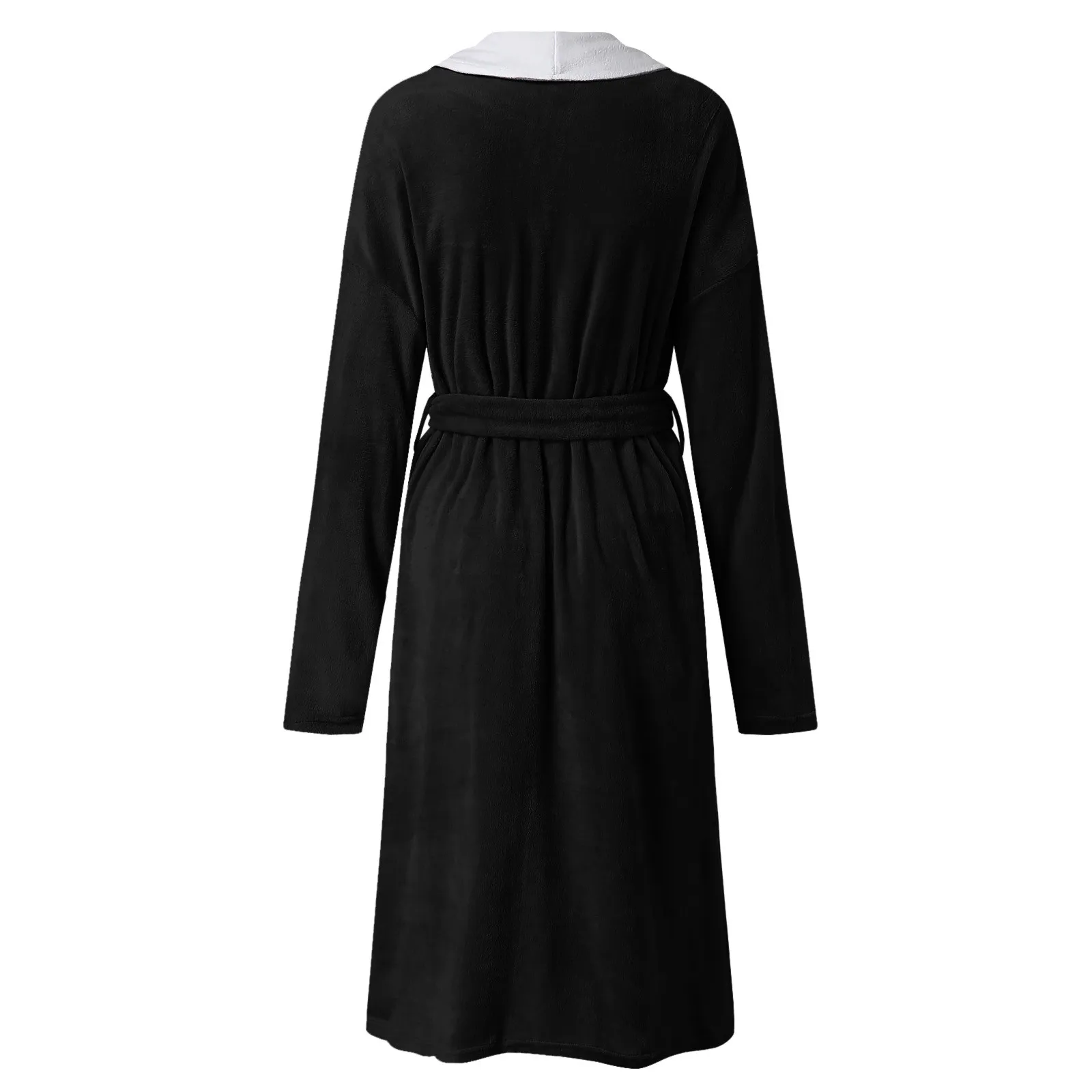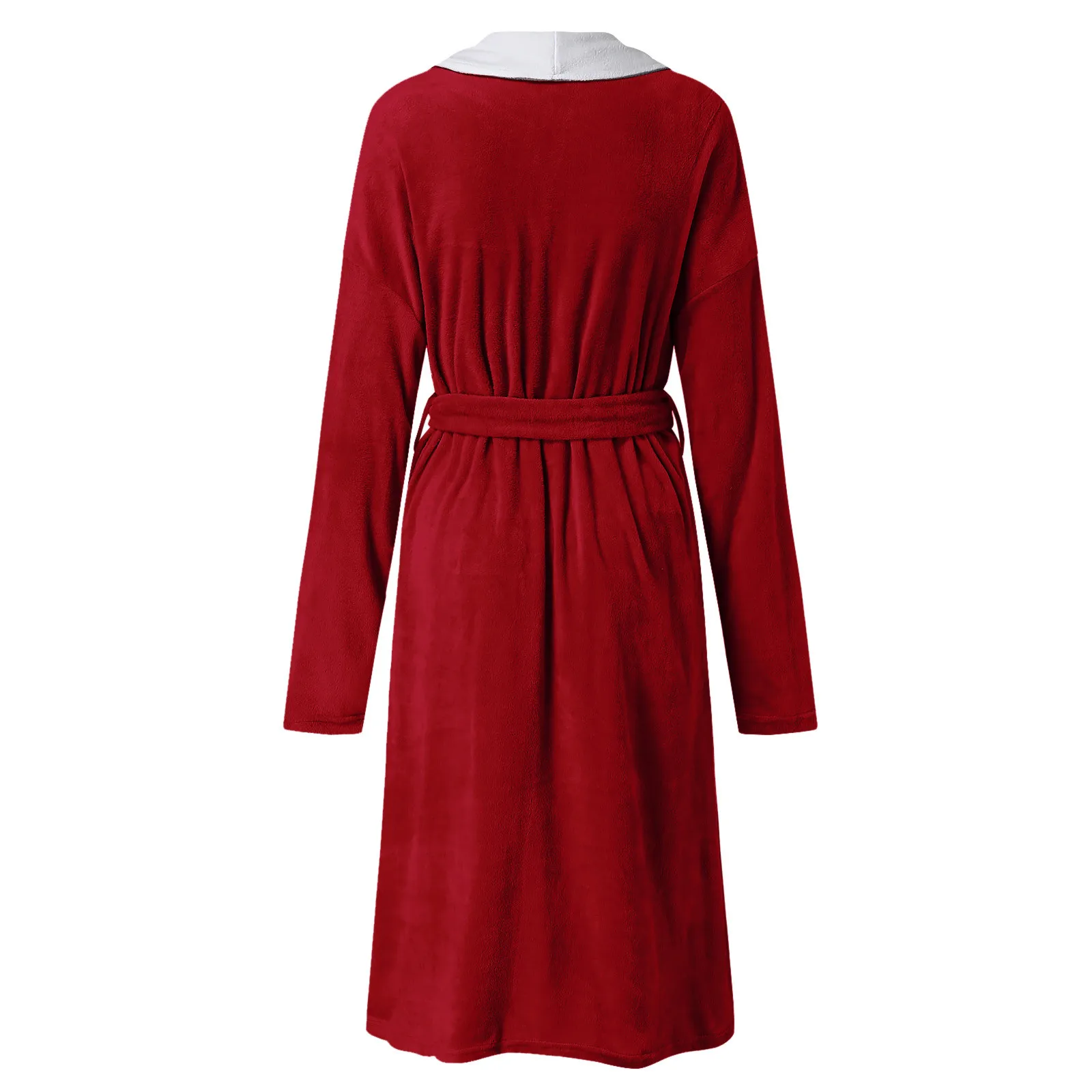 Женская теплая Пижама средней длины с отворотом и карманом, домашний халат
