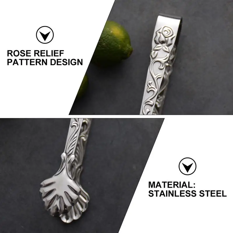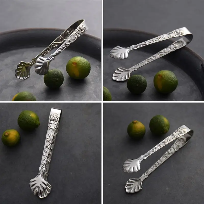 2 шт. Нержавеющаясталь кубика льда зажимы щипцы для сахара Еда s зажимы Кухня сервировочный ключ рельефная Роза кубика льда зажим Еда зажим