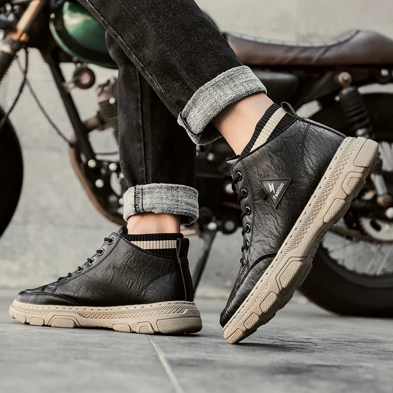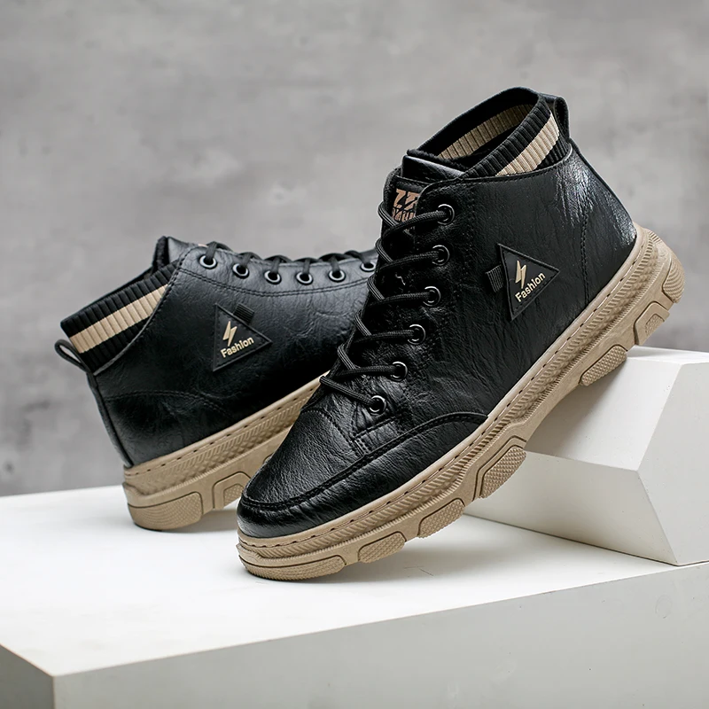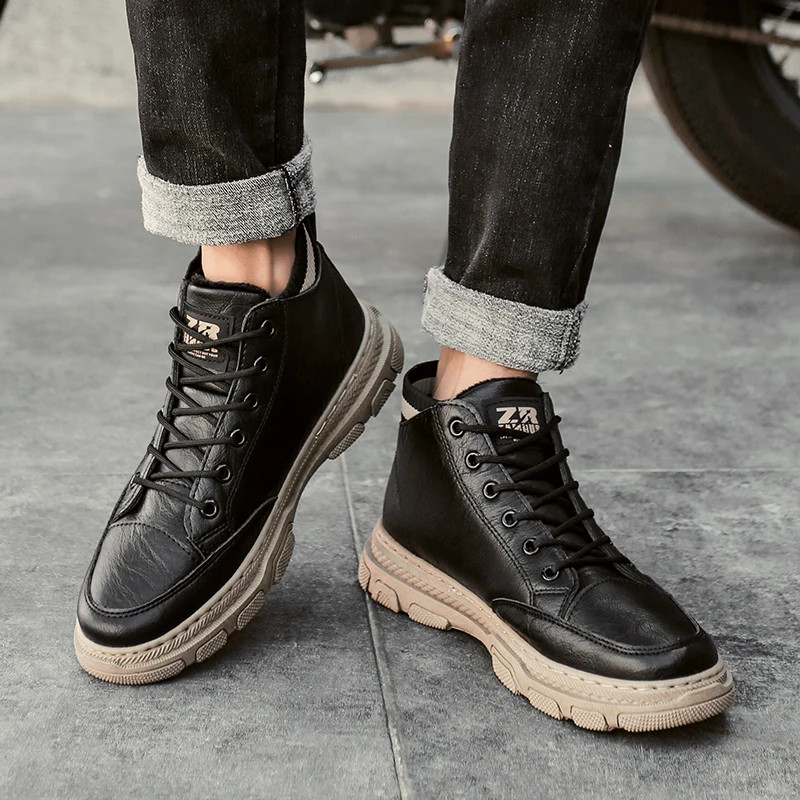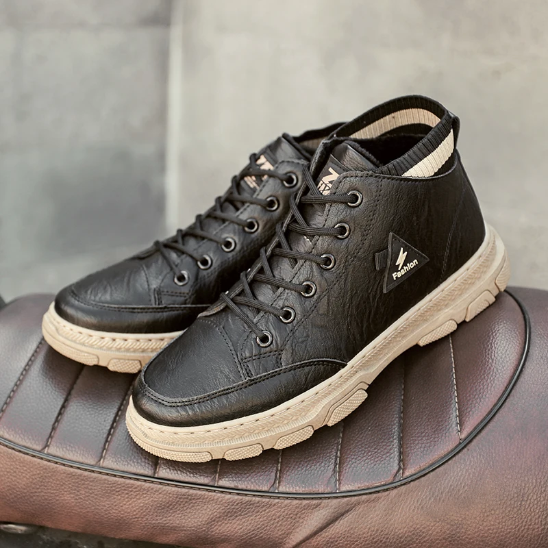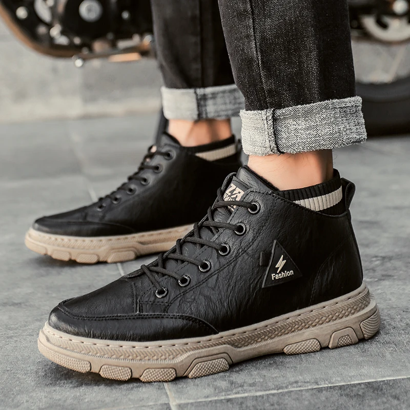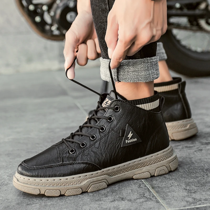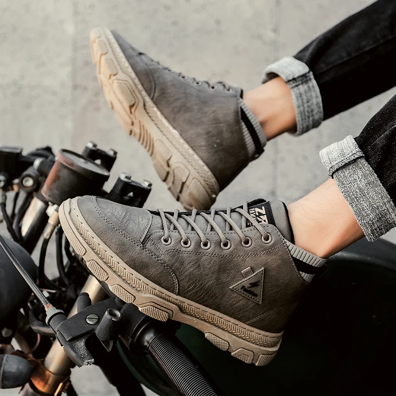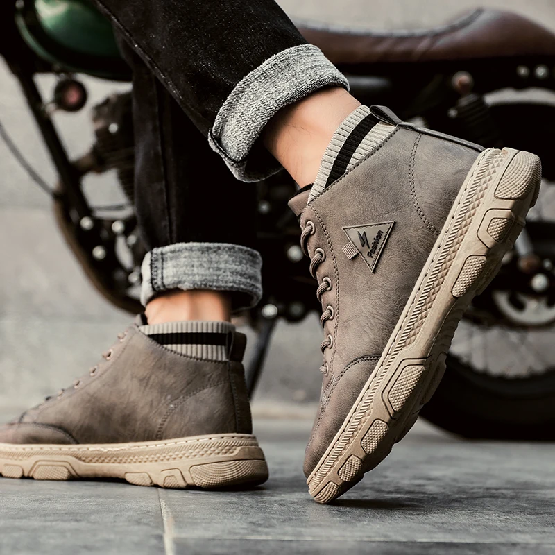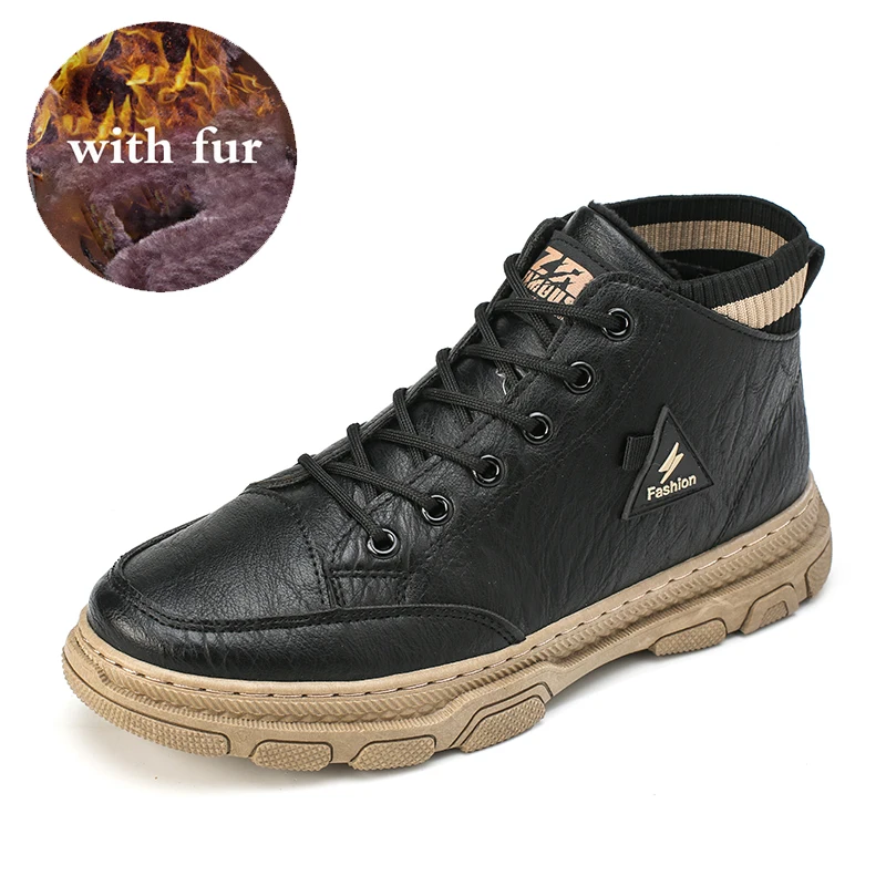 Мужские ботинки на шнуровке, зимние теплые ботинки с плюшевой подкладкой, мотоциклетные ботинки с нескользящей подошвой, водонепроницаемая рабочая обувь для мальчиков