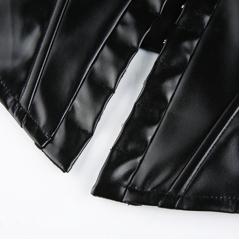Женский топ-бюстье без рукавов, кожаный топ-майка, укороченный сексуальный бюстье на бретельках, шикарный укороченный топ, клубная одежда