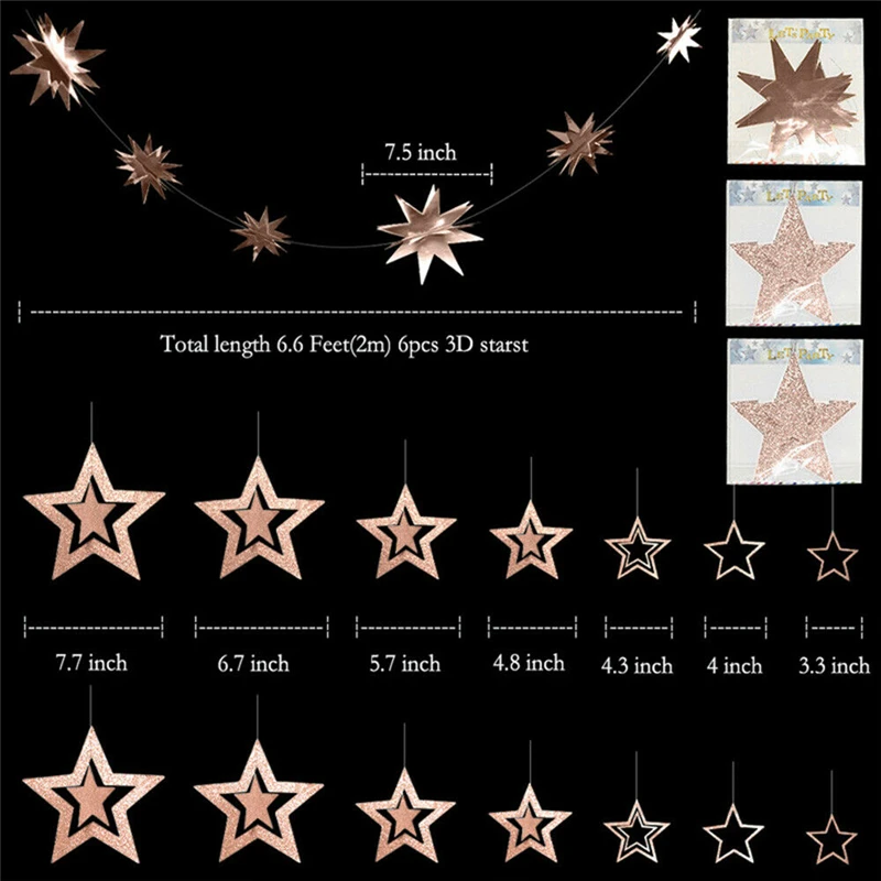 7 шт.компл. звезда розового золота, бумажные гирлянды, настенная аж...