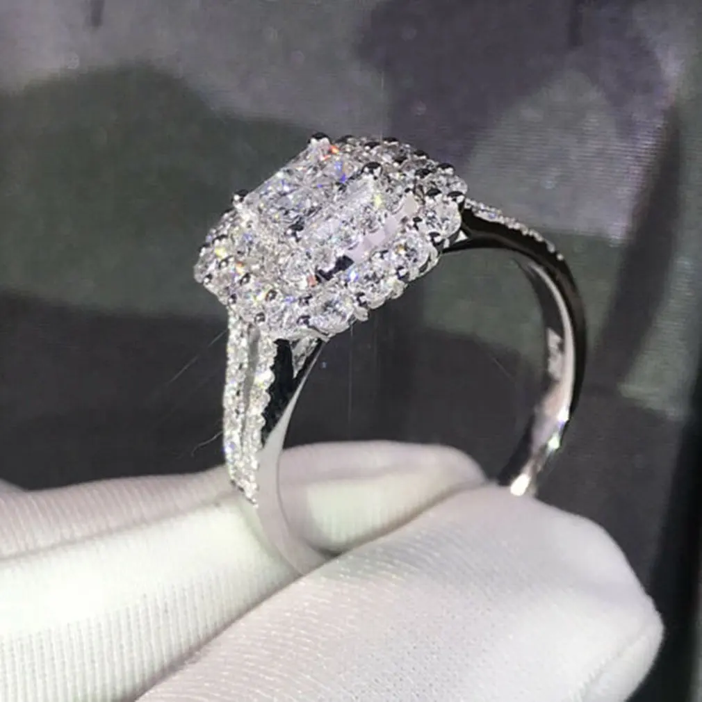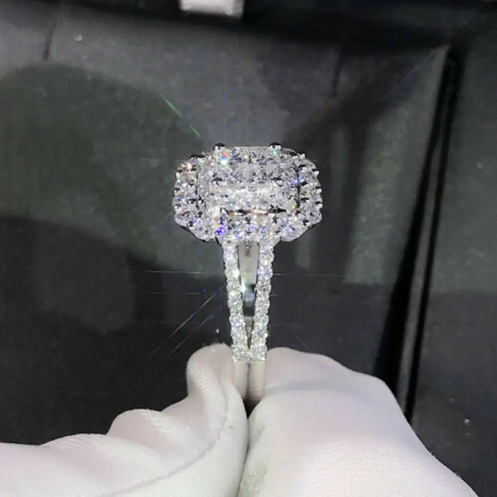 Великолепное женское кольцо квадратной формы, полное блестящее кольцо со льдом, микро проложить Кристалл Циркон, ослепительное свадебное кольцо, обручальное кольцо