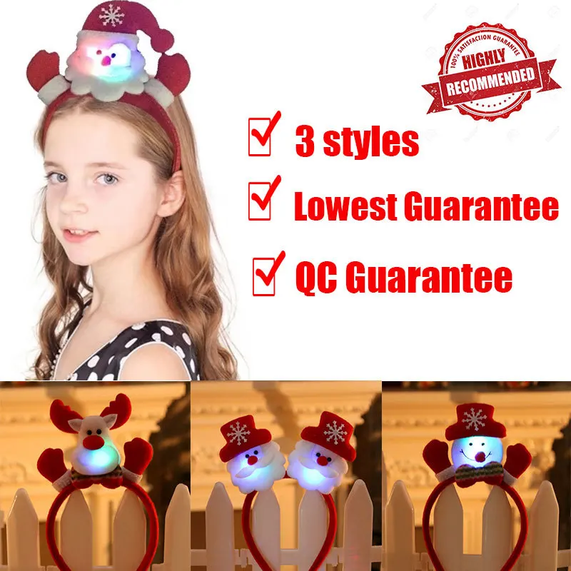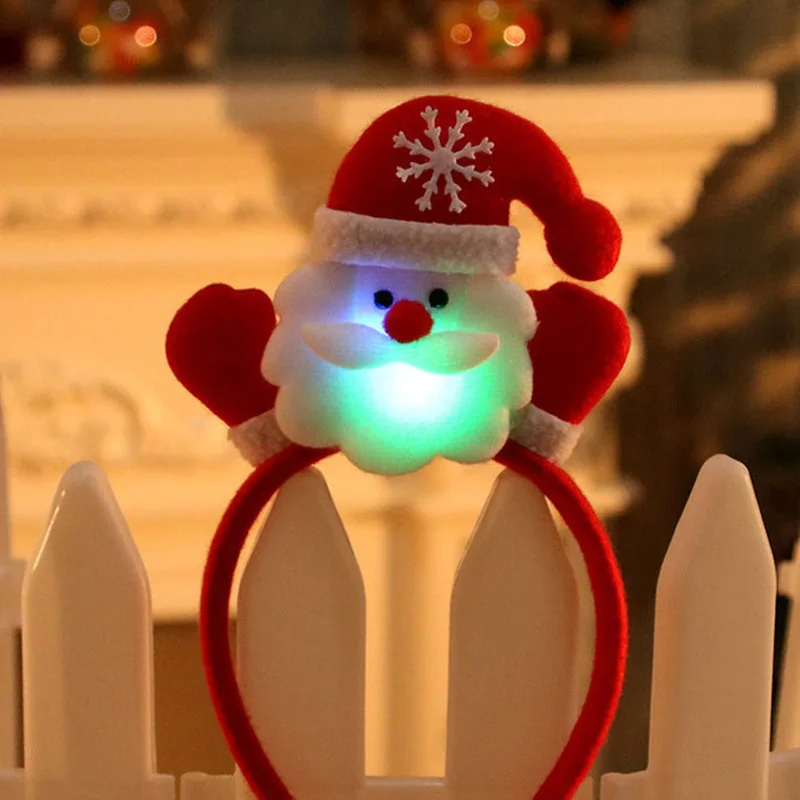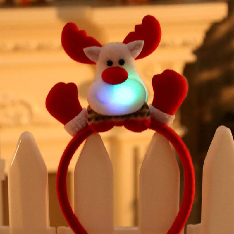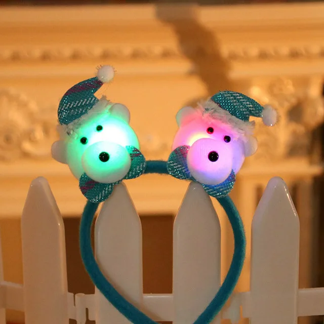 Повязка на голову со светодиодной подсветкой, светящаяся лента для волос с Санта, оленем, снеговиком, медведем, светильник стороннее украшение на Рождество, Новый год