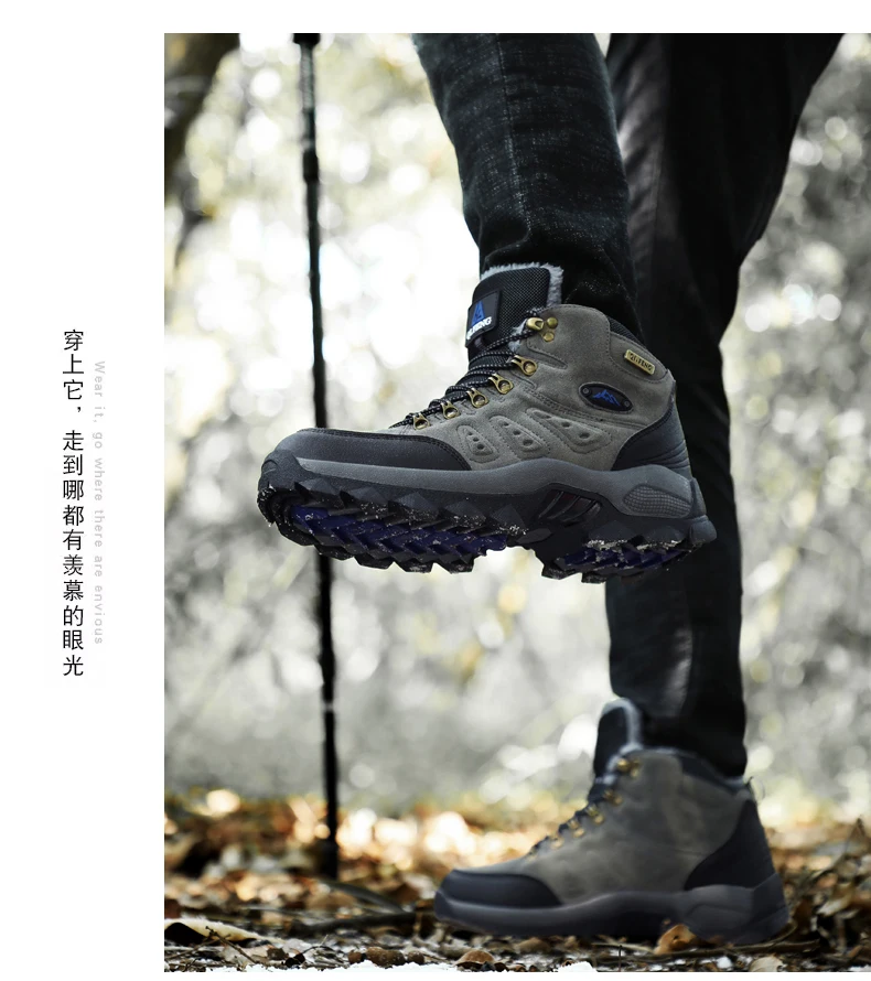 Зимние горные туристические ботинки для мужчин и женщин, водонепроницаемые уличные кроссовки с теплым плюшем, мужские ботинки для прогулок, походов, охоты