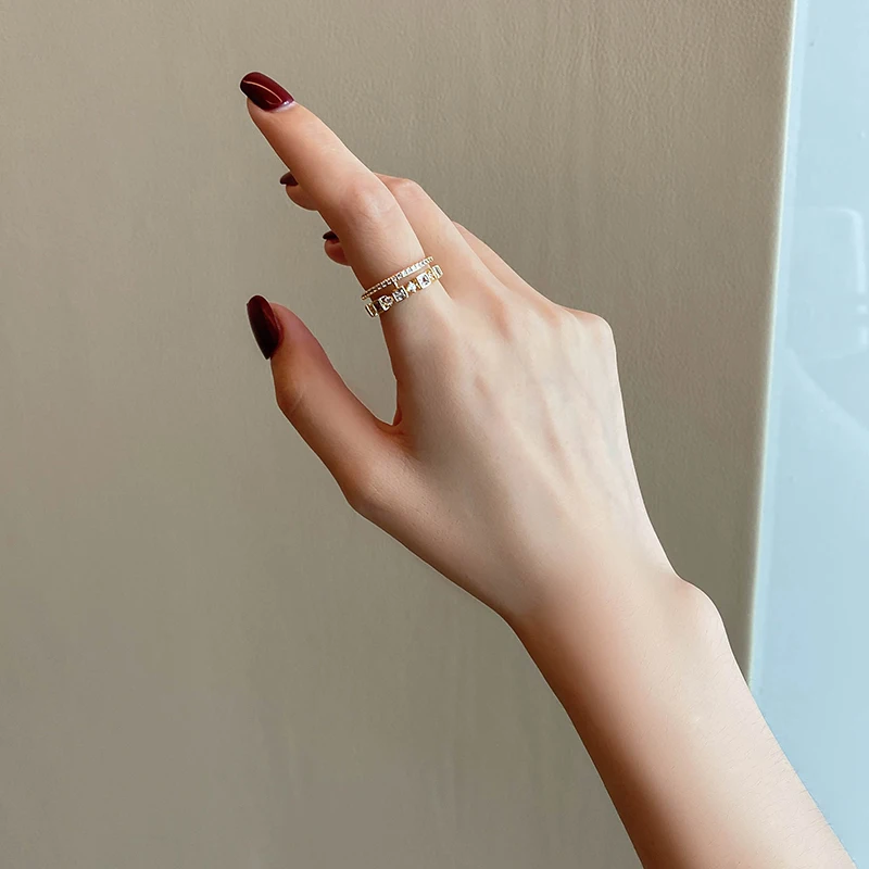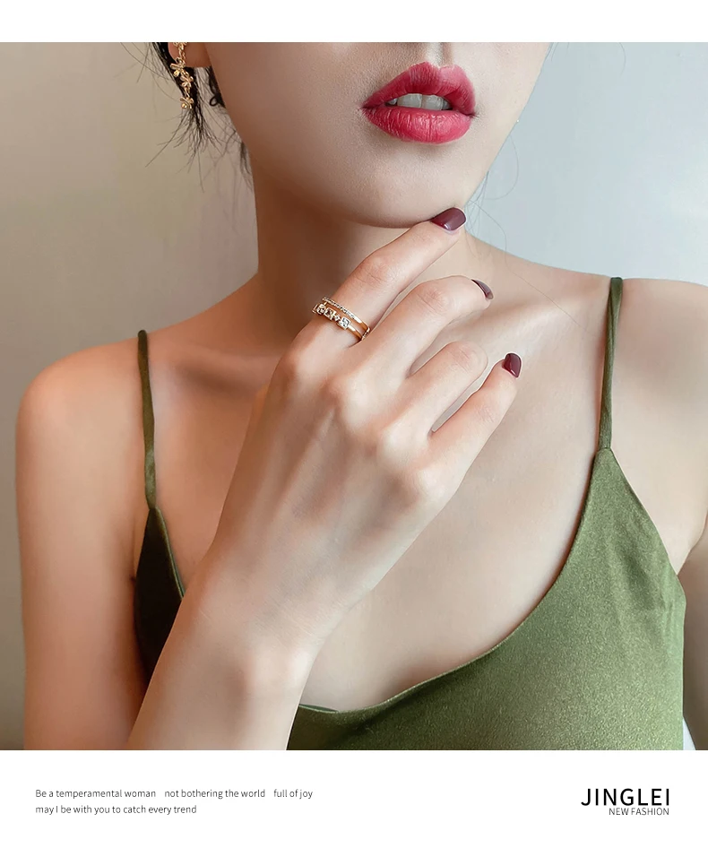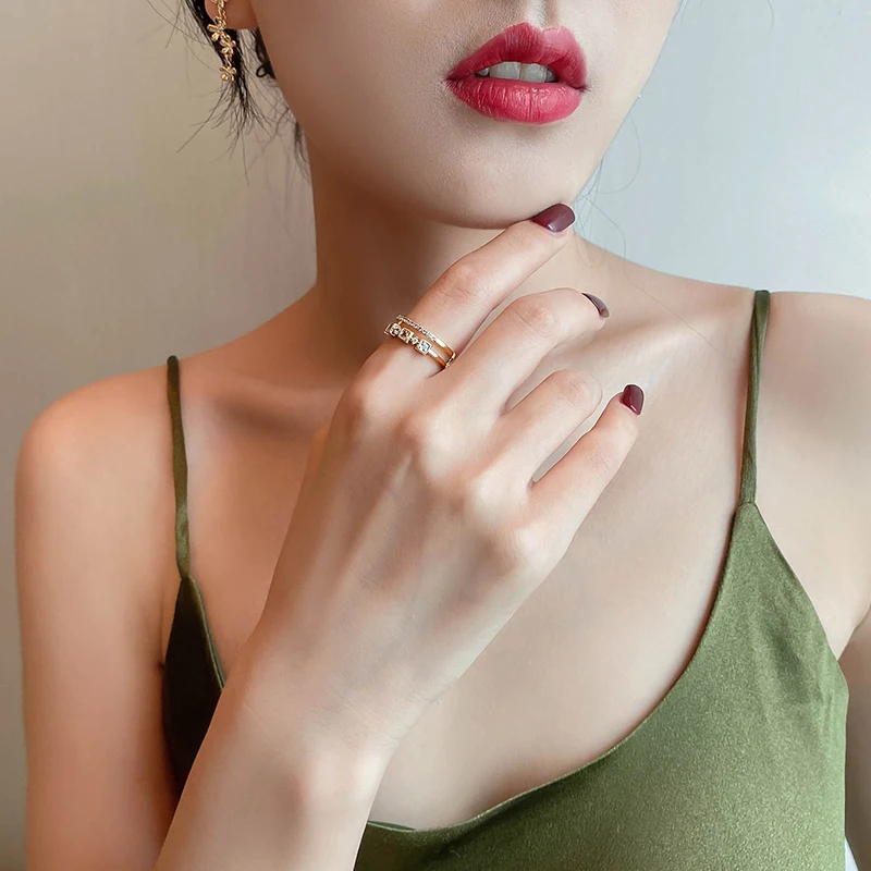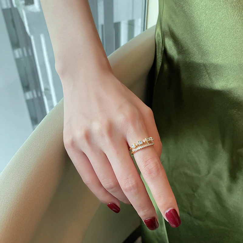 Изысканный Циркон двойной кольцо на палец для женщин, модные корейс...