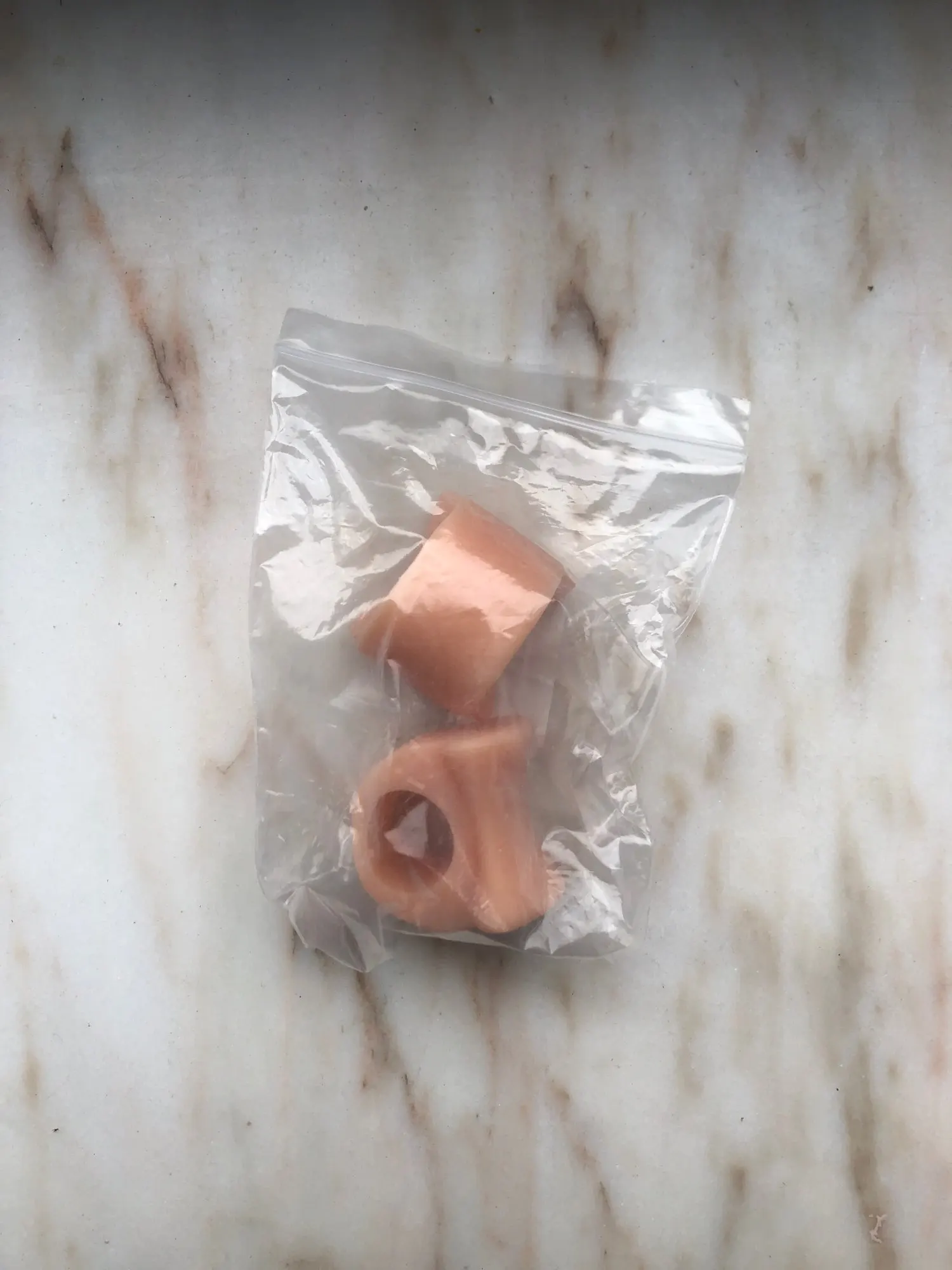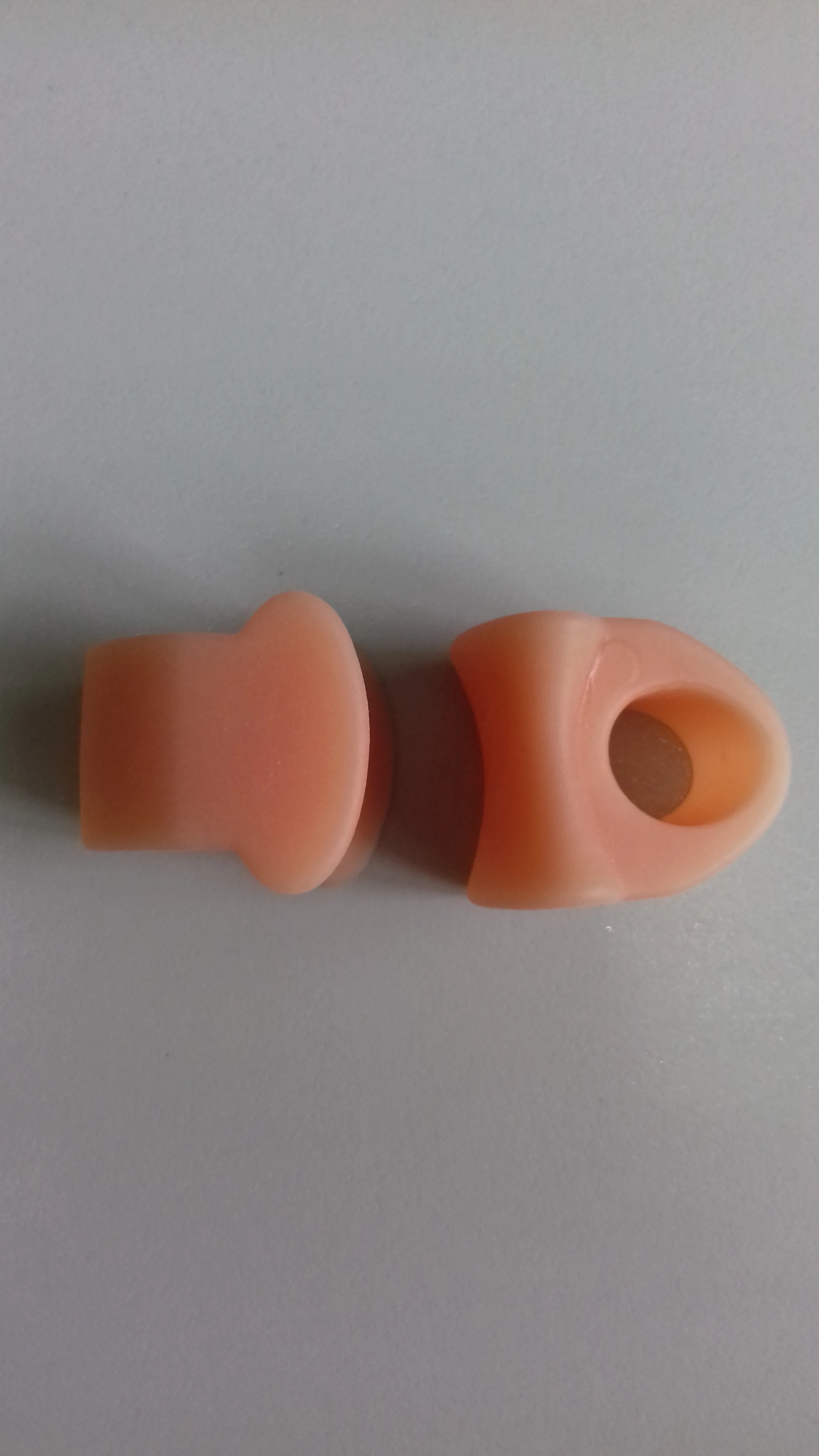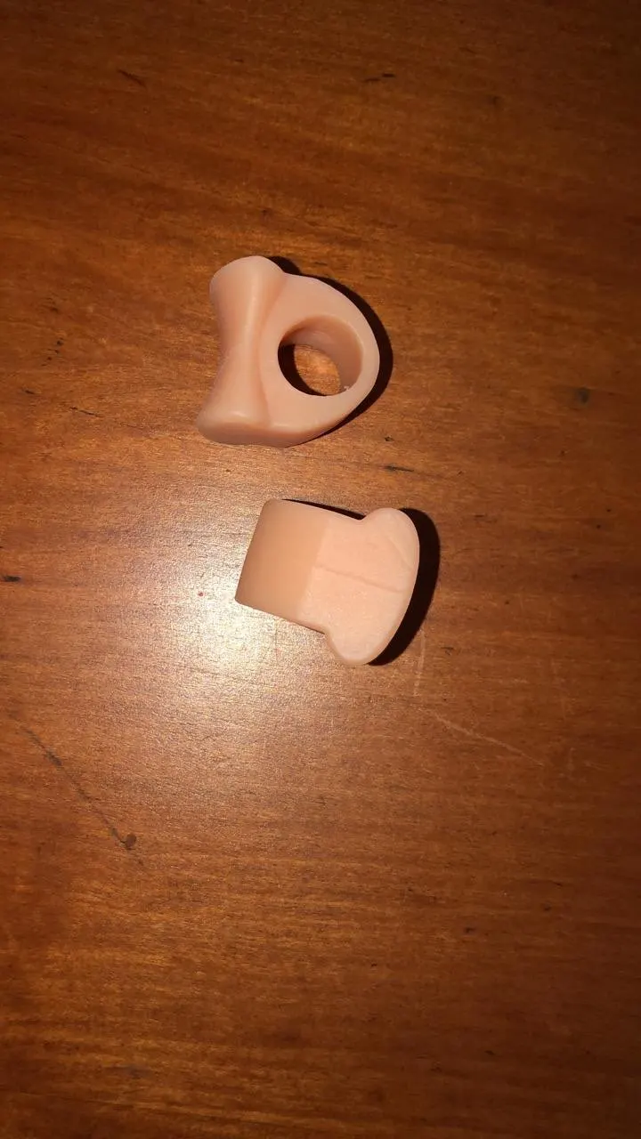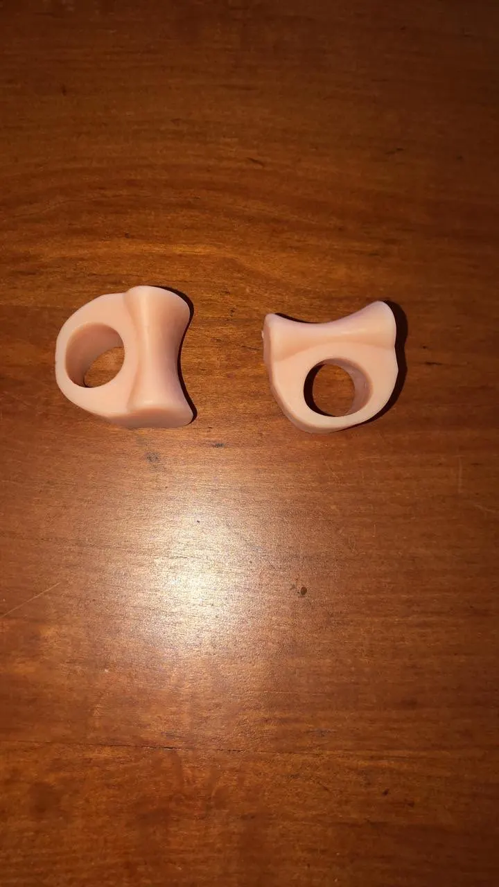 Пользуюсь вкладышами давно. Раньше покупал на 2 пальца. В них разделитель маленький. У этих он больше. Надеваю на средний палец. В результате большой не цепляется за обувь. Материал очень мягкий.