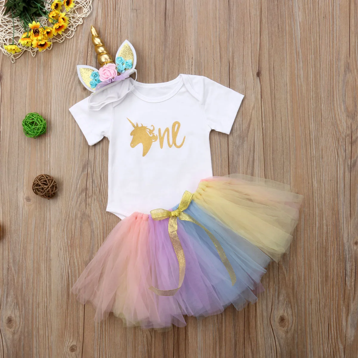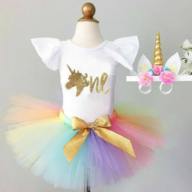 Одежда для новорожденных девочек на 1-й день рождения с единорогом ...