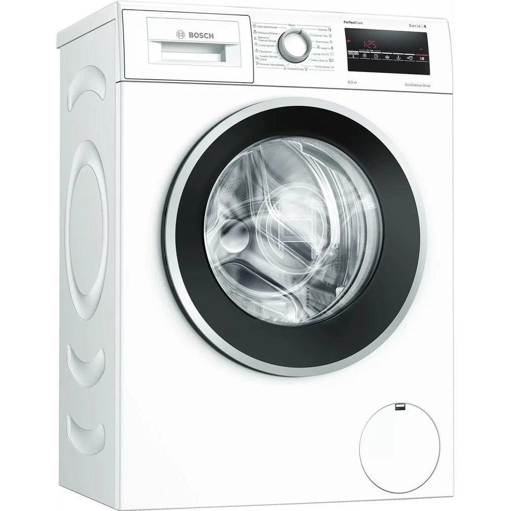 Основные характеристики- Установка: отдельностоящая - Конструкция стиральной машины: узкая - Количество барабанов: 1 - Тип двигателя: инверторный Основной барабан- Тип загрузки: фронтальная - Поверхность барабана: SoftCare Drum - Максимальная загрузка белья: 6.5 кг - Максимальная скорость отжима: до 1000 об/мин - Класс стирки: A - Класс отжима: B - Уровень шума при стирке: 53 дБ - Уровень шума при отжиме: 72 дБ Управление- Тип управления: электромеханическое - Переключатели: сенсорные, поворотные - Размещение панели управления: под наклоном - Количество программ: 15 - Программы: пуховики, чувствительная, рубашки/блузки, джинсы/темное белье, супер 30/15 мин, тонкое белье/шелк, спортивная, хлопок, хлопок эко, синтетика, смешанное/быстрое, шерсть, полоскание, отжим/слив, ночная - Дополнительные программы: дополнительное полоскание, Speed Perfect Температурные режимы- Регулировка температуры стирки: да - Количество температурных режимов: 5 - Минимальная температура воды: 20 °С - Максимальная температура воды: 90 °С Дисплей- Цифровой дисплей: да - Тип дисплея: LED Таймер- Таймер отсрочки: да - Максимальное время отсрочки стирки: 24 ч Индикация- Звуковой сигнал окончания стирки: да - Индикация окончания стирки: да - Индикация времени до конца программы: да - Индикация температуры: да - Индикация скорости отжима: да - Индикация блокировки дверцы: да - Индикация включения/паузы: да - Индикация выбора дополнительных функций: да Расход воды- Расход воды за цикл: 43 л Отжим- Регулировка скорости отжима: да - Количество скоростей отжима: 5 - Отмена отжима: да - Автоматический контроль загрузки: да Технологии- Технология ActiveWater: да - Функция дозагрузки белья: да Защита и безопасность- Защита от скачков напряжения: да - Защита от детей: да - Защита от протечек: да - Система защиты от протечек: многоступенчатая - Блокировка люка во время работы: да - Электромагнитный замок: да - Контроль пенообразования: да Энергопотребление- Класс энергопотребления: A - Энергопотребление за цикл: 0.98 кВт/ч - Длина сетевого шнура: 1.75 м Особенности конструкции- Направление открывания люка: влево - Диаметр загрузочного люка: 32 см - Угол открытия люка: 165 ° - Регулируемые ножки: да - Самоочищающаяся кювета для моющего средства: да Дополнительные функции- Автобаланс: да - Автовзвешивание белья: да - Возможность установки под столешницу: да - Дополнительная информация: PerfectFit, система автоматического определения степени загрузки машины Active Water Plus, 3D-AquaSpar Цвет и материал- Цвет: белый - Цвет дверцы люка: черный Комплектация- Инструкция: да Размеры и вес- Высота: 84.8 см - Ширина: 59.8 см - Глубина: 44.6 см