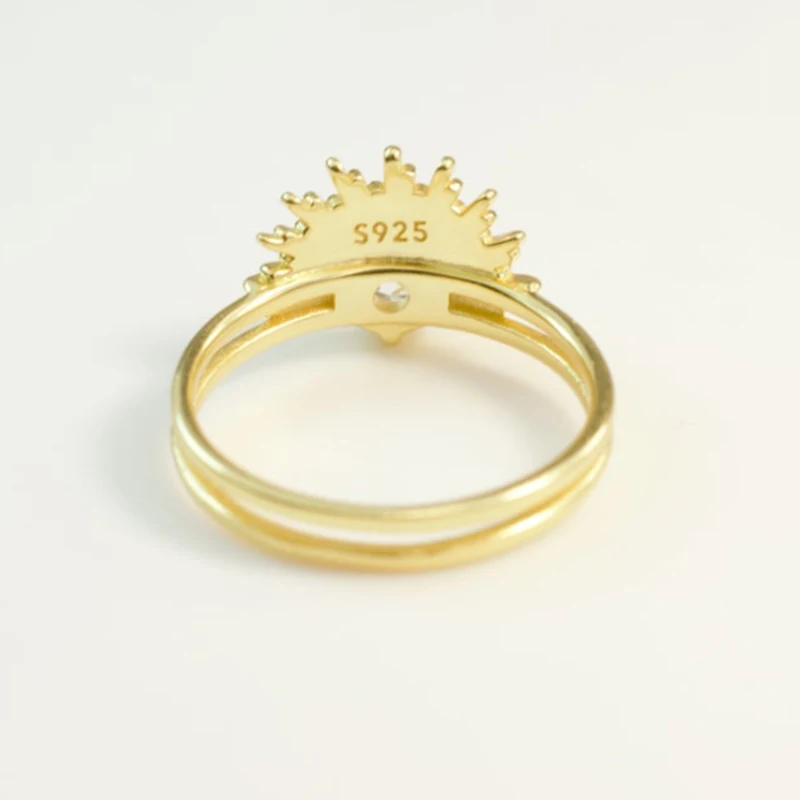 Women JewelryMinimalist Thin Circle Gem Rings Jewelry Carving S925