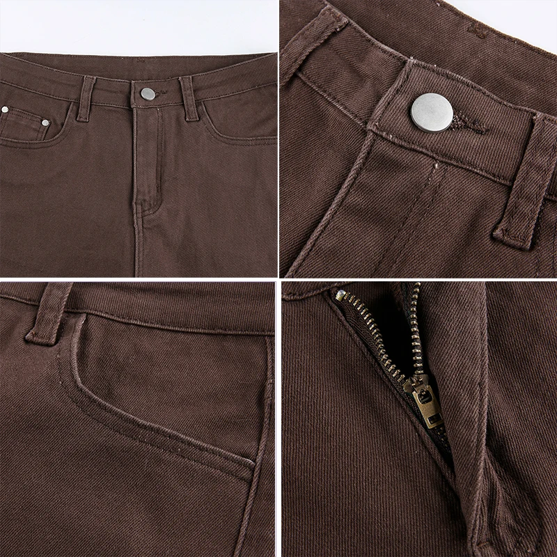 Женские винтажные джинсы Y2K, коричневые прямые брюки из денима с в...
