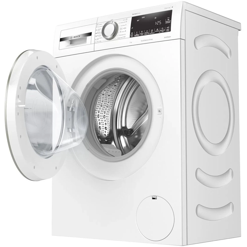 Основные характеристики- Установка: отдельностоящая - Конструкция стиральной машины: узкая - Количество барабанов: 1 - Тип двигателя: инверторный Основной барабан- Тип загрузки: фронтальная - Поверхность барабана: SoftCare Drum - Максимальная загрузка белья: 7 кг - Максимальная скорость отжима: до 1200 об/мин - Класс стирки: A - Класс отжима: B - Уровень шума при стирке: 52 дБ - Уровень шума при отжиме: 75 дБ Управление- Тип управления: электронное - Переключатели: сенсорные, поворотные - Размещение панели управления: под наклоном - Количество программ: 14 - Программы: пуховики, чувствительная, рубашки/блузы, джинсы/тёмное бельё, супер 30/15 мин, тонкое бельё, спортивная обувь, хлопок, хлопок эко, синтетика, смешанное/быстро, шерсть, полоскание, отжим/слив - Дополнительные программы: выбор пятен, замачивание/предварительная стирка, дополнительное полоскание, антисминание, Speed Perfect Температурные режимы- Регулировка температуры стирки: да - Количество температурных режимов: 5 - Минимальная температура воды: 20 °С - Максимальная температура воды: 90 °С Дисплей- Цифровой дисплей: да - Тип дисплея: LED Таймер- Таймер отсрочки: да - Максимальное время отсрочки стирки: 24 ч Индикация- Звуковой сигнал окончания стирки: да - Индикация времени до конца программы: да - Индикация температуры: да - Индикация скорости отжима: да - Индикация блокировки дверцы: да - Индикация ошибок: да - Индикация включения/паузы: да - Индикация выбора дополнительных функций: да - Индикация времени отложенного старта: да Расход воды- Автоматическая регулировка уровня воды: да Отжим- Регулировка скорости отжима: да - Отмена отжима: да - Автоматический контроль загрузки: да Технологии- Технология ActiveWater: да - Функция дозагрузки белья: да Защита и безопасность- Защита от скачков напряжения: да - Защита от детей: да - Защита от протечек: да - Система защиты от протечек: полная - Блокировка люка во время работы: да - Электромагнитный замок: да - Контроль пенообразования: да Энергопотребление- Класс энергопотребления: A - Энергопотребление за цикл: 1.06 кВт/ч - Длина сетевого шнура: 1.75 м Особенности конструкции- Направление открывания люка: влево - Диаметр загрузочного люка: 65 см - Угол открытия люка: 165 ° - Самоочищающаяся кювета для моющего средства: да - Функция очистки барабана: да Дополнительные функции- Самодиагностика: да - Автобаланс: да - Возможность установки под столешницу: да - Дополнительная информация: PerfectFit, AntiVibration, 3D-AquaSpar, технология AntiStain, PreSoaking, система VoltCheck, функция TimeDelay Цвет и материал- Цвет: белый - Цвет дверцы люка: серебристый Комплектация- Инструкция: да Размеры и вес- Высота: 84.8 см - Ширина: 59.8 см - Глубина: 44.6 см - Вес: 63.23 кг