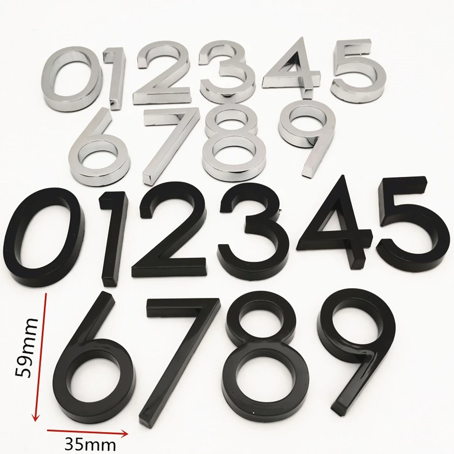 Дверная табличка 2 шт.компл., серебристый или черный цвет, Домашний номер, 6 см, декоративные буквы и цифры, табличка, АБС-пластик, наклейка на почтовый ящик, этикетка цифры на дверь почтовый ящик уличный почтовый ящи
