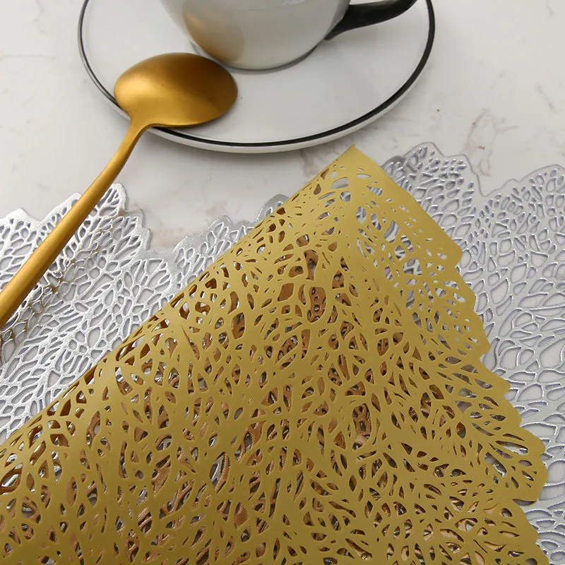 1 шт. полый коврик-салфетка из ПВХ с геометрическим узором, Настольный коврик, украшения для обеденного стола, Нескользящие теплоизоляционные подставки золотого и серебряного цветов