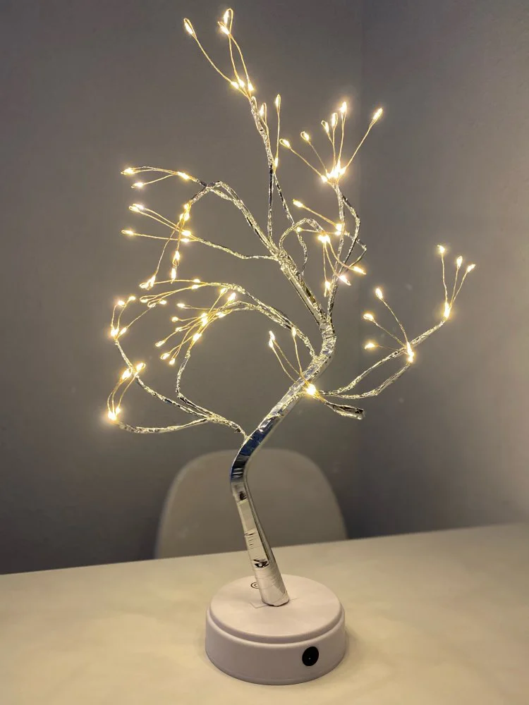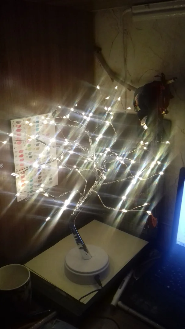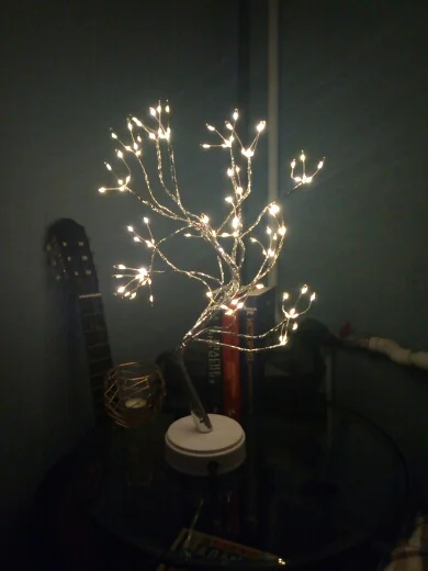 Волшебная лампа! Я долго хотел что-то похожее на это, в детской было очень удобно! Для качества продукта требуется трехпальцевая батарея. Высота около 45-50 см. На багажнике много ветвей, все согнуто, и на каждой ветке три ветви со светодиодами! Полностью удовлетворены заказом, это означает, что деньги разумные! Не общаясь с продавцами,