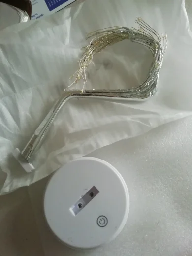 Товар прибыл очень быстро. Коробка выглядела ушибленной, но внутри она была очень хорошо защищена. Он очень красивый, его можно использовать с батареями или подключать к электрической сети, с ее кнопкой, так что он не всегда подключен. Цвета яркие и красивые, они отличные, я очень доволен.