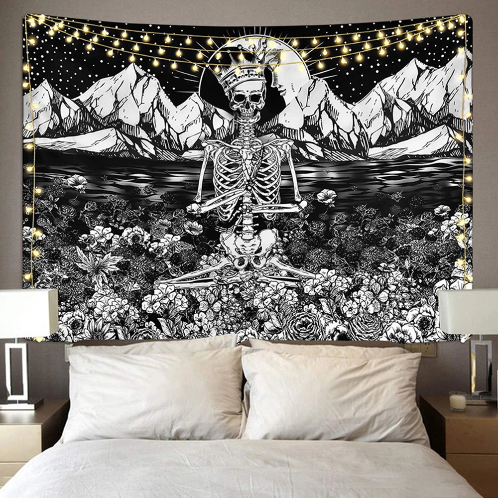 Гобелен с черепом ведьмы горы настенный подвесной черный с психоделической мандалой гобелен настенный ковер тканевый покрывало домашний декор