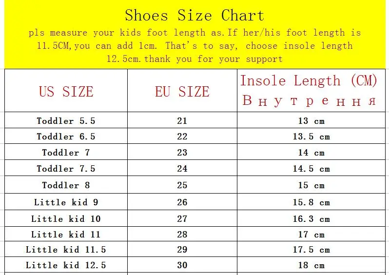 И из-за длительного времени доставки авиа-отправление Почты Китая и ребенок быстро вырастет, пожалуйста, выберите обувь большего размера для вашего ребенка.