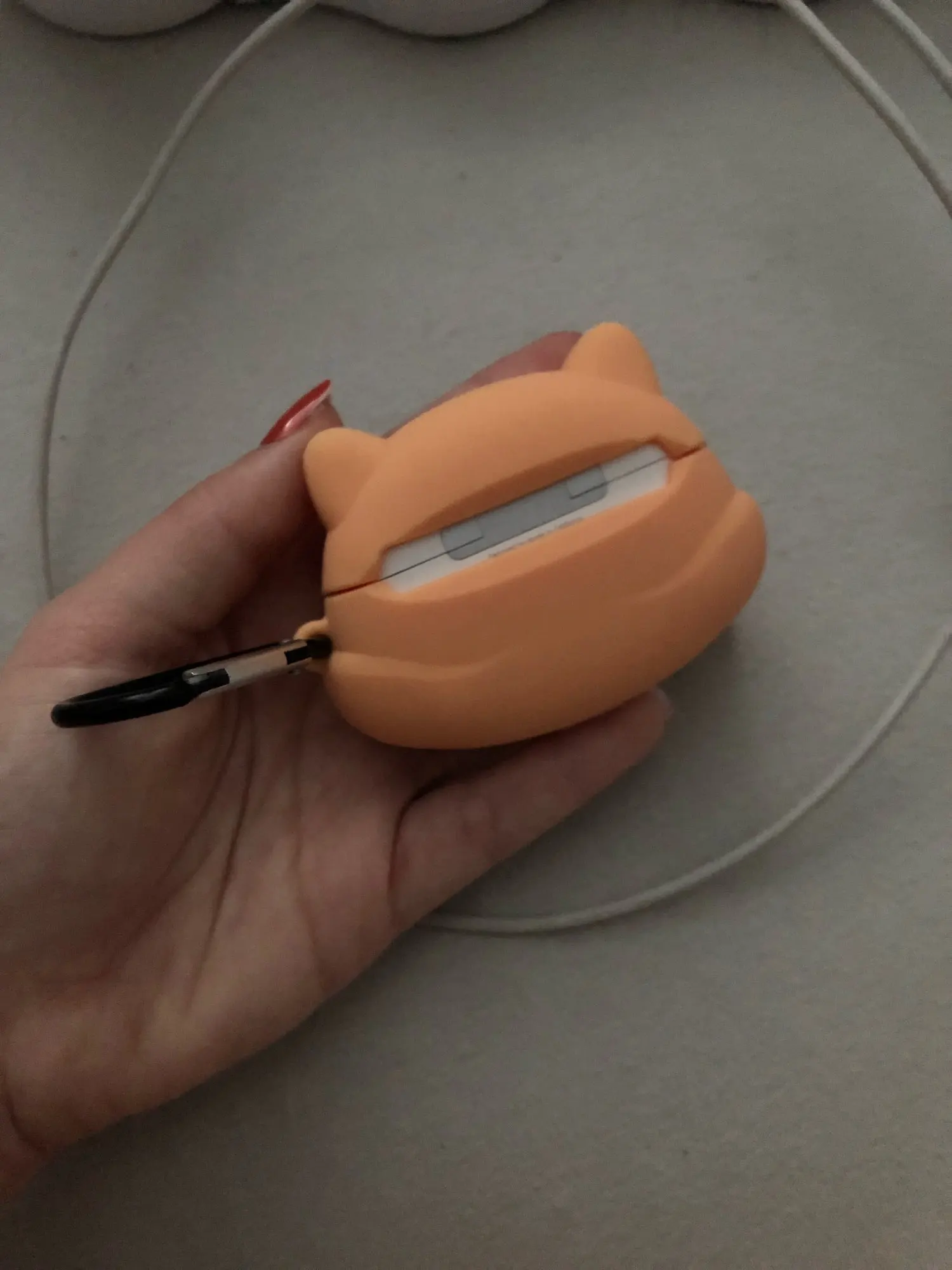 Выглядит точно как на фото, очень толстый чехол и делает мои airpods легче найти