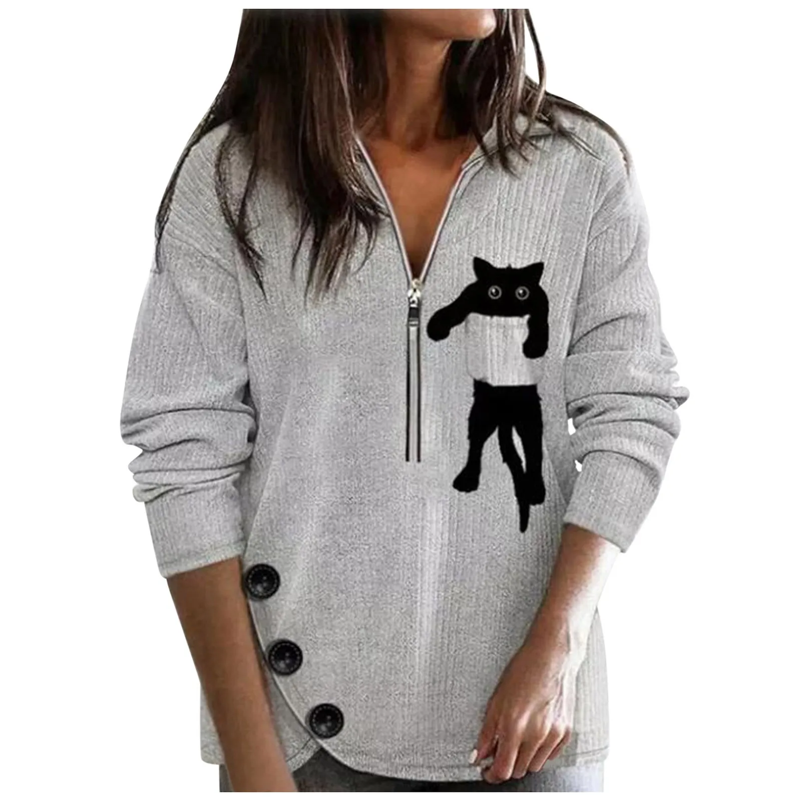 Женские Свитера 40 # с высокой молнией и воротником осенний свитер на молнии с лацканами и котом с длинными рукавами одежда женский свитер 2020 Свитера