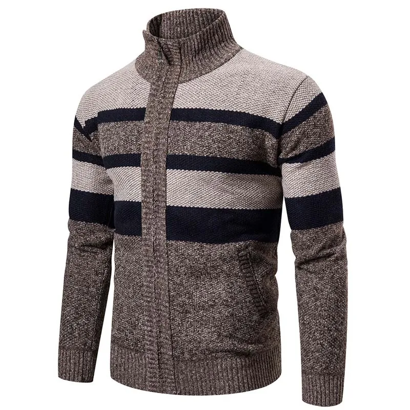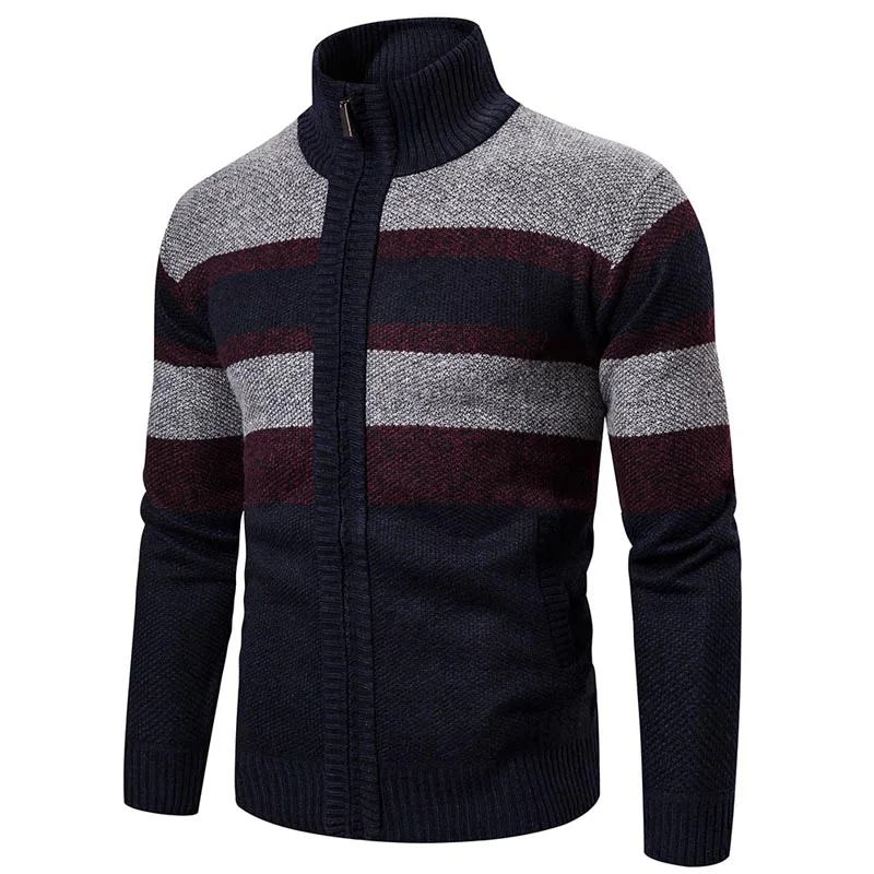 Осенне-зимний вязаный свитер для мужчин, Новый Повседневный тонкий кардиган на молнии с длинным рукавом, мужские свитера, теплое Комфортное трикотажное пальто в стиле пэчворк