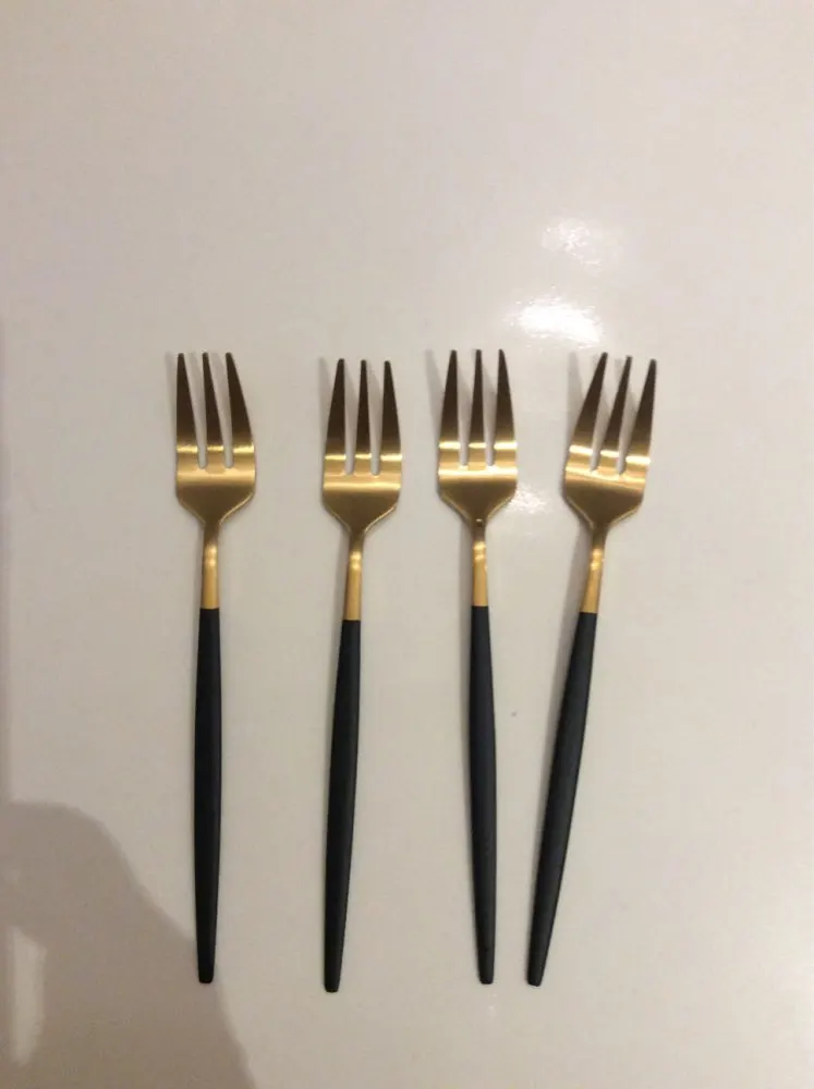 Золотой слишком черный! Он не блестит, как другие столовые приборы, которые я купил в той же модели