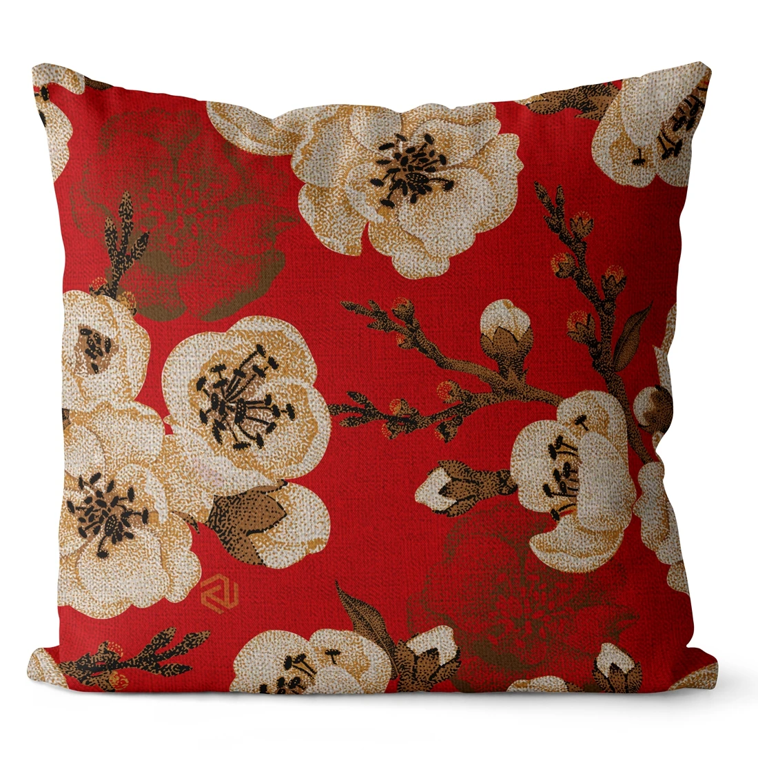 Чехол для подушки в японском стиле Сакура, льняная бежевая квадратн...