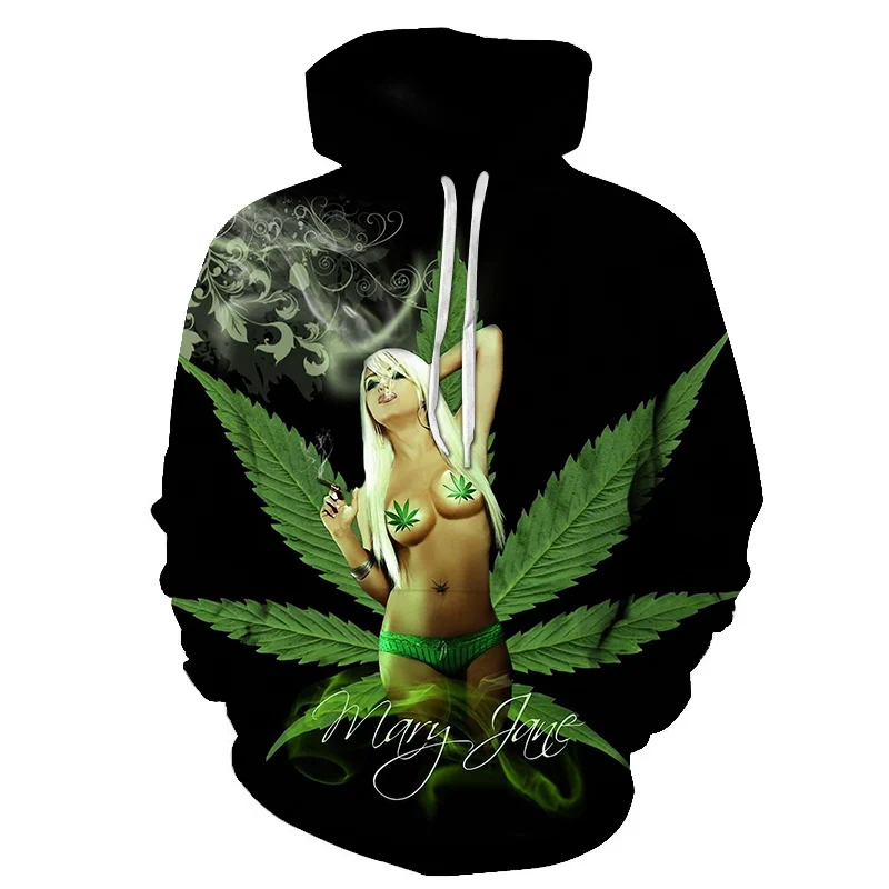 Толстовка с капюшоном, худи с 3D принтом зеленых кленовых листьев 2...