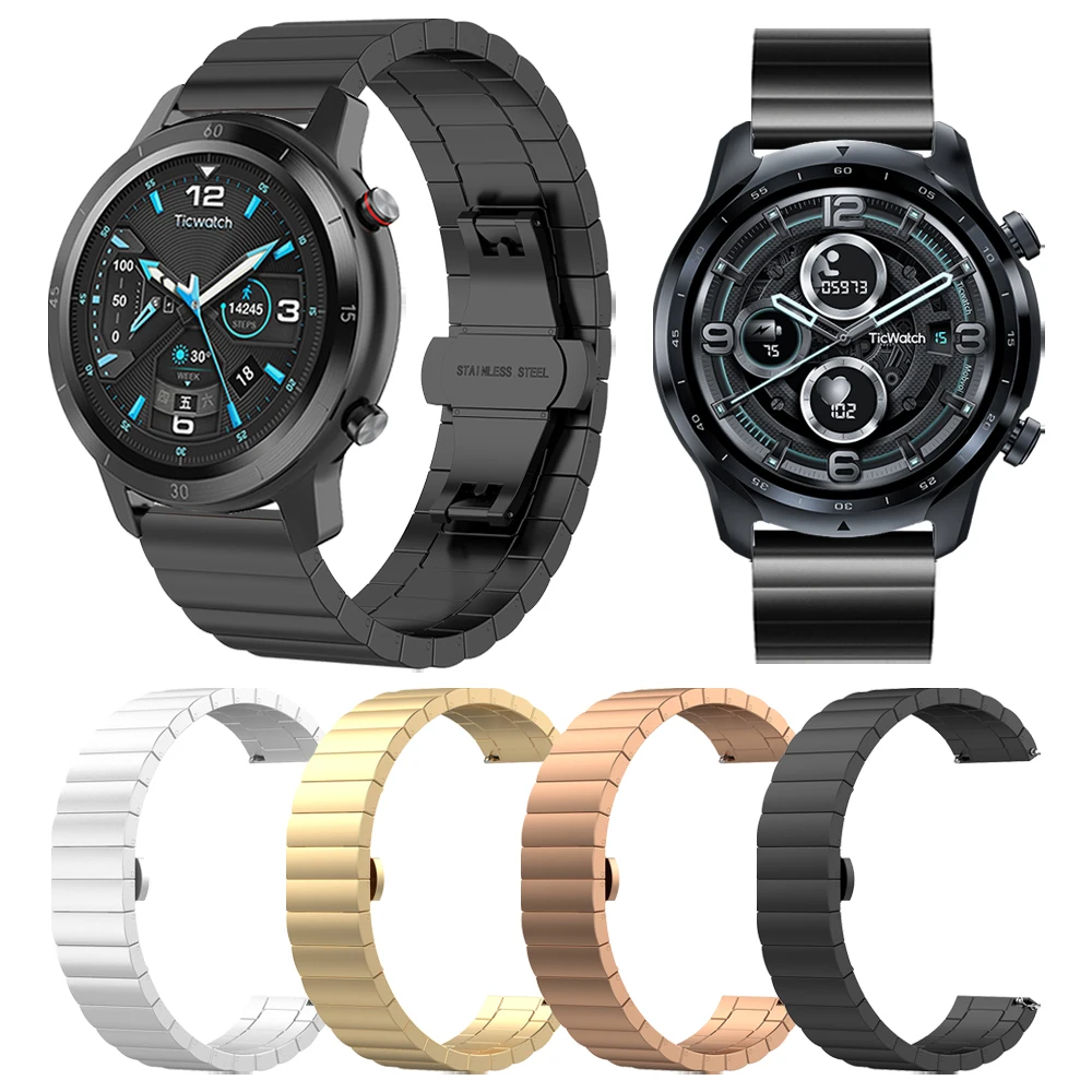 Металлический ремешок из нержавеющей стали с застежкой-бабочкой для TicWatch Pro 3, браслет для GPS, ремешок для наручных часов Ticwatch GTXS2E2E2