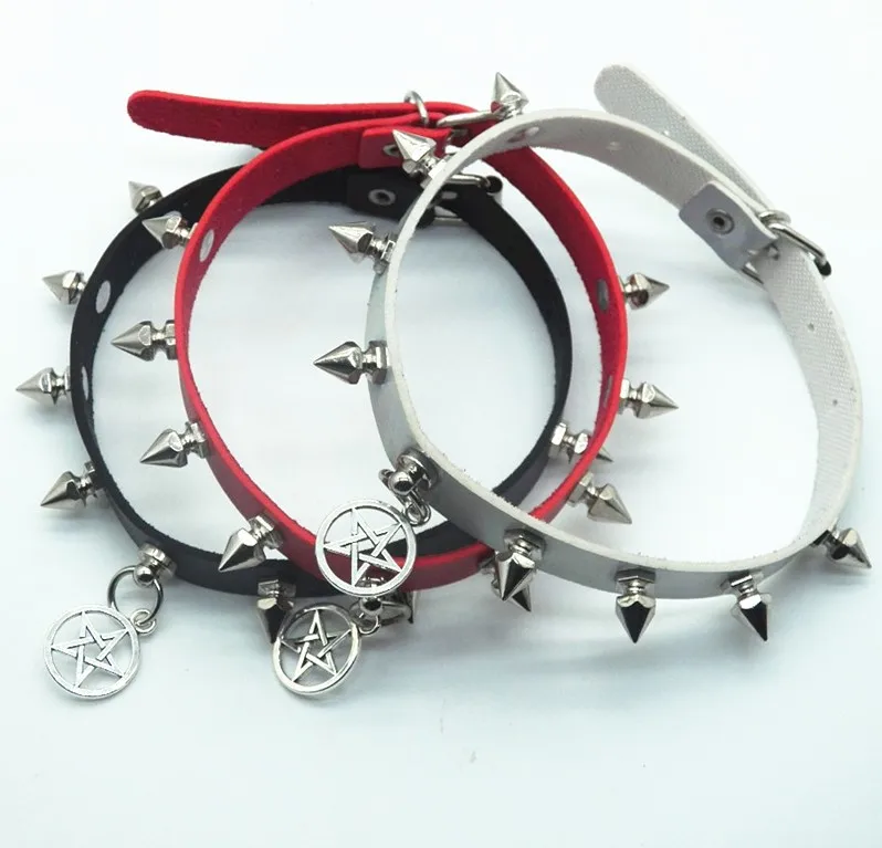Сексуальное панк-Джокер с заклепками, чокер, кожаный бондаж, косплей, гот Рейв, ювелирные изделия, Женская жгут, Готическая пентаграмма, подвеска, ожерелья