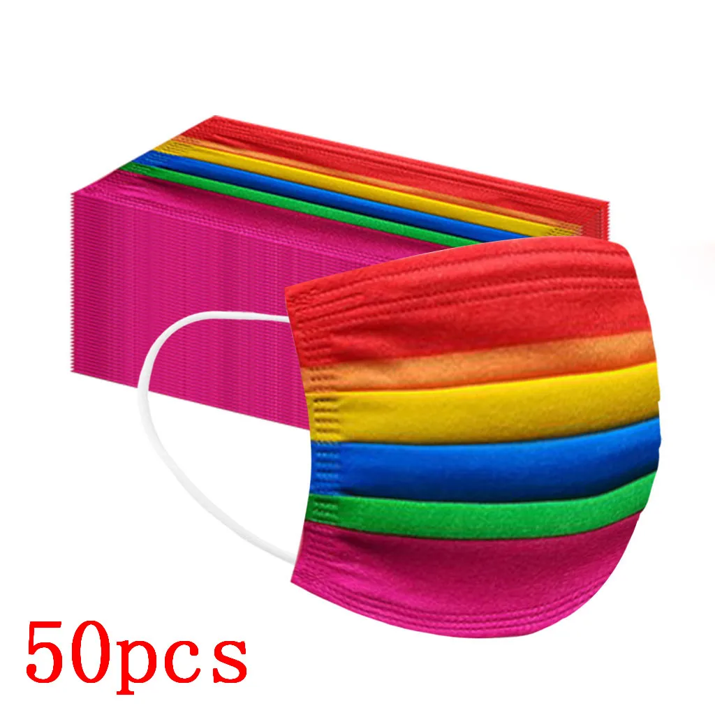 50 шт. одноразовая маска для лица с принтом радуги, дышащая маска д...