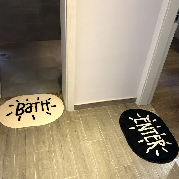 Коврик для ванной с овальной надписью в скандинавском стиле, нескользящий коврик для ванной, коврик для ванной комнаты, балконов, ковров