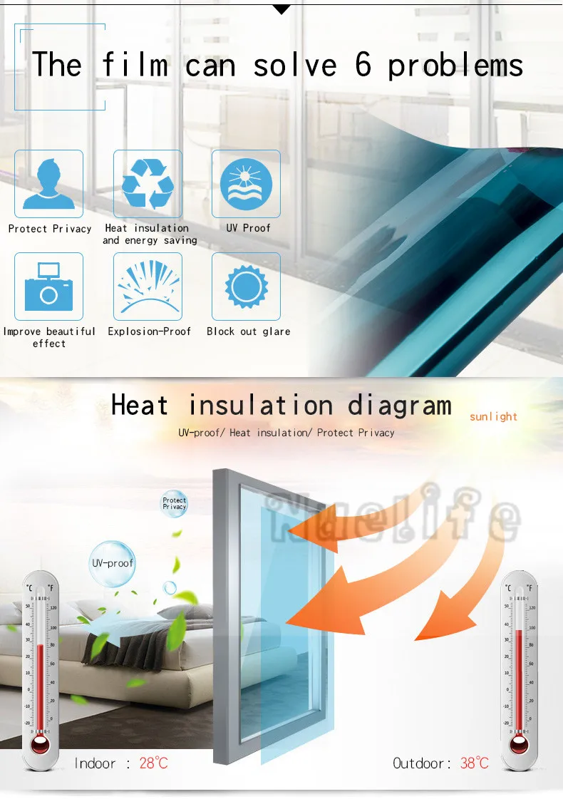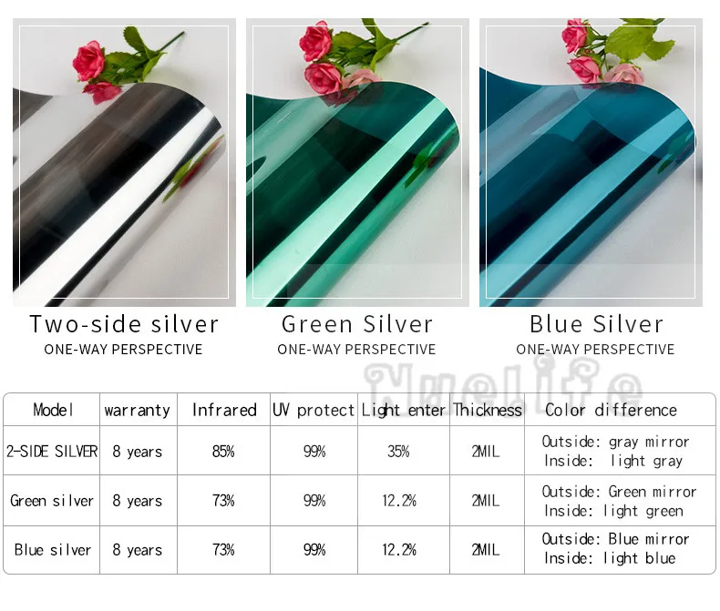 Не забудьте использовать много мыльной воды, чтобы намочить как клейкую сторону, так и поверхность окна эффективный УФ-отказ-УФ-растворители добавляются в нижней части, отражающая пленка окна может блокировать 99% УФ-лучей, И уменьшает выцветание и старение внутренней мебели, слой против царапин на поверхности, сопротивление трению, Не выцветает и не блистер, легко снимается, экономичный и практичный