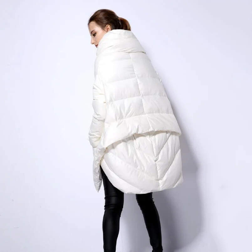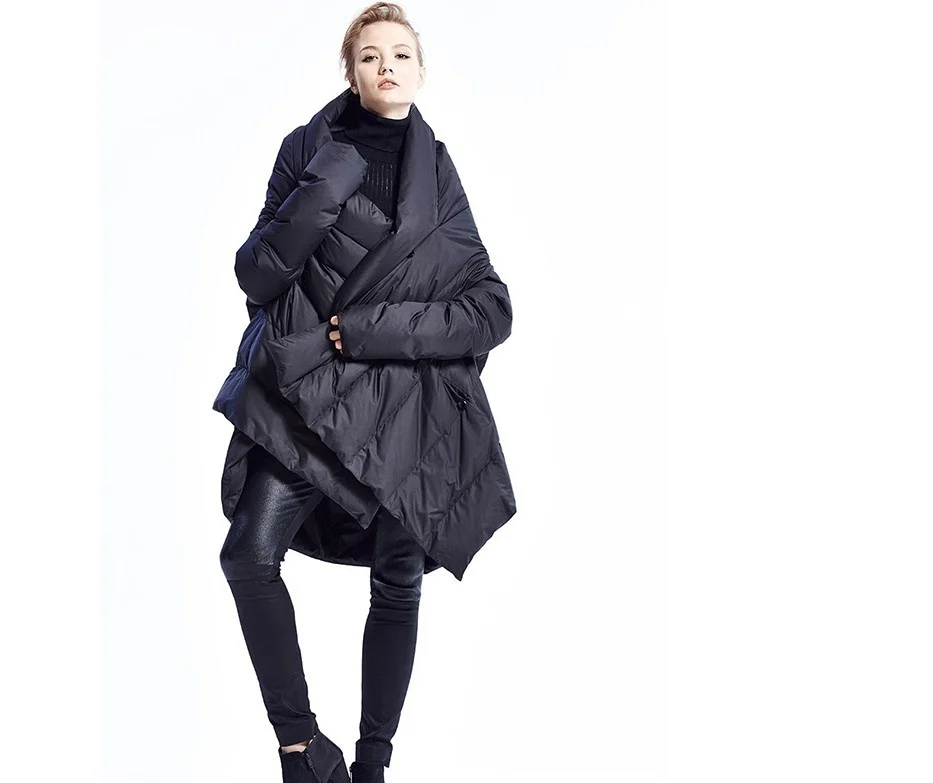 LANMREM Зимний шарф воротник ассиметричный скрытый однотонный черный белый уличный женский пуховик 2A1705
