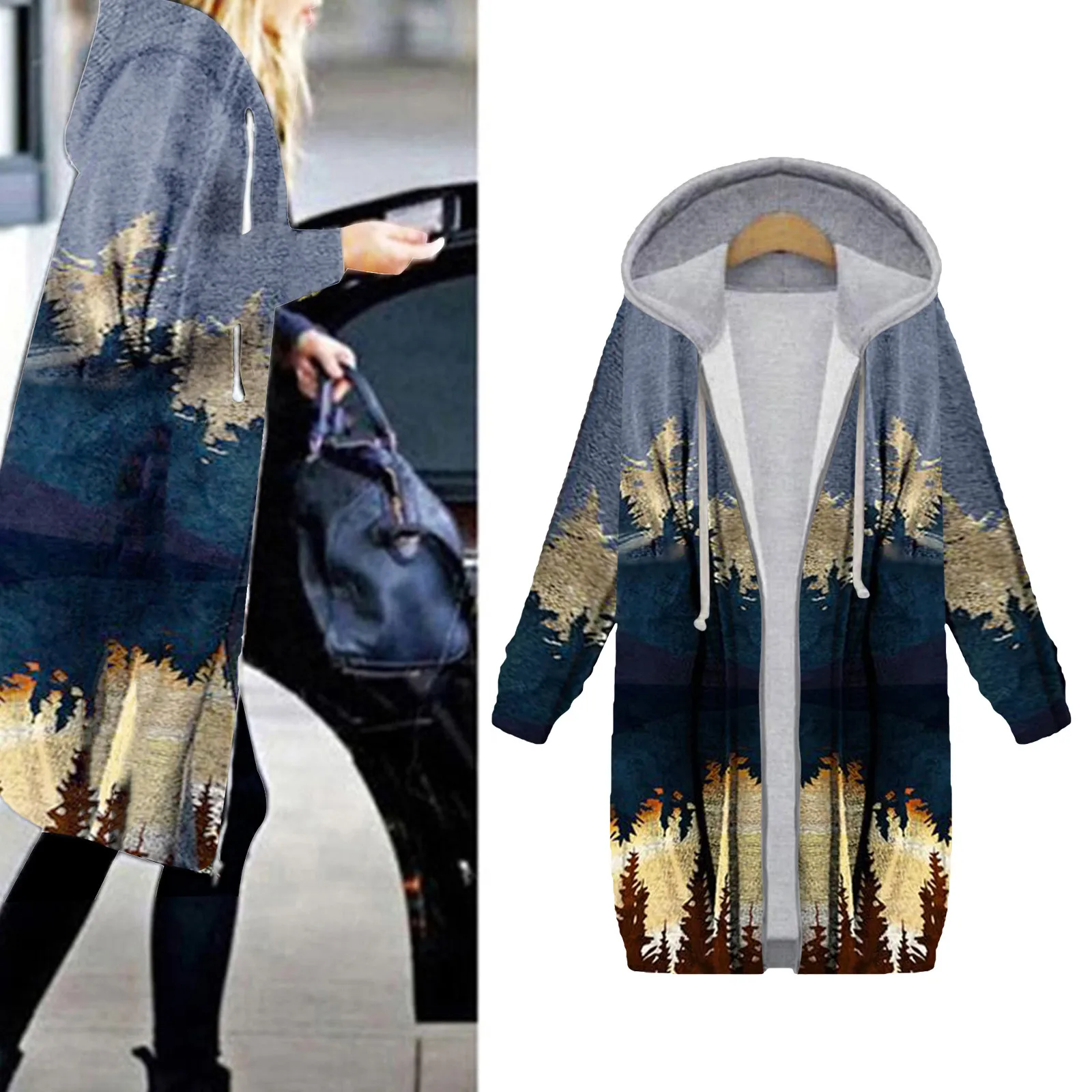Женская теплая толстовка с капюшоном, кардиган из хлопка на молнии с цветочным принтом, длинная верхняя одежда, пальто, зимняя стеганая куртка, женские парки # T2