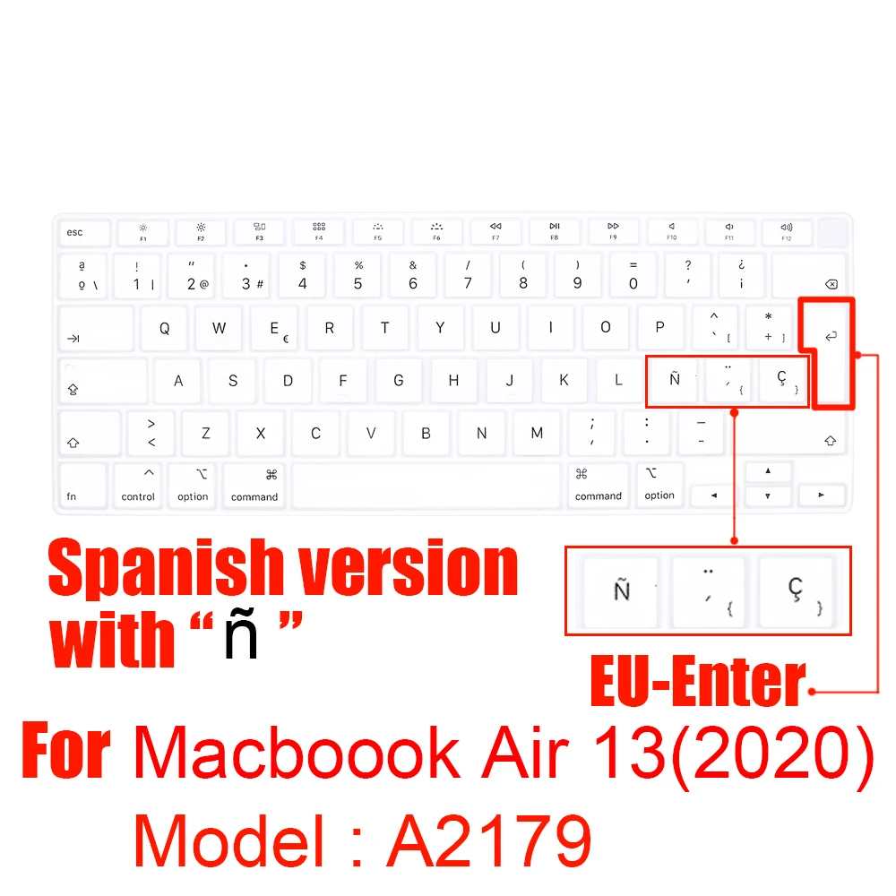 Для 2020 Новый Macbook Air 13 дюймов Силиконовая обложка клавиатуры для ноутбука с touchbar EU версия A2179 ноутбука защитная пленка