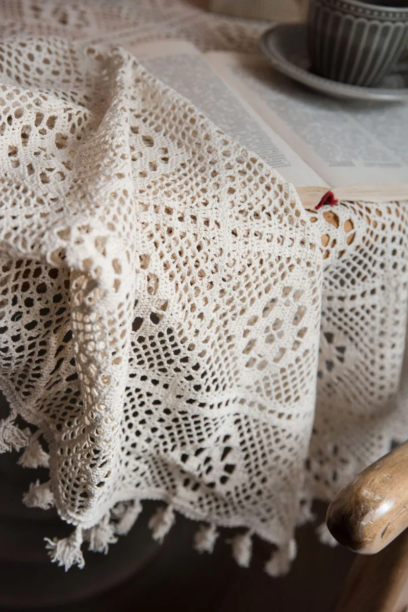 Скатерть для обеденного стола, Текстиль для дома, гостиницы, для рождества, свадьбы, ручное вязание крючком, круглая хлопковая Вязаная скатерть с кисточками