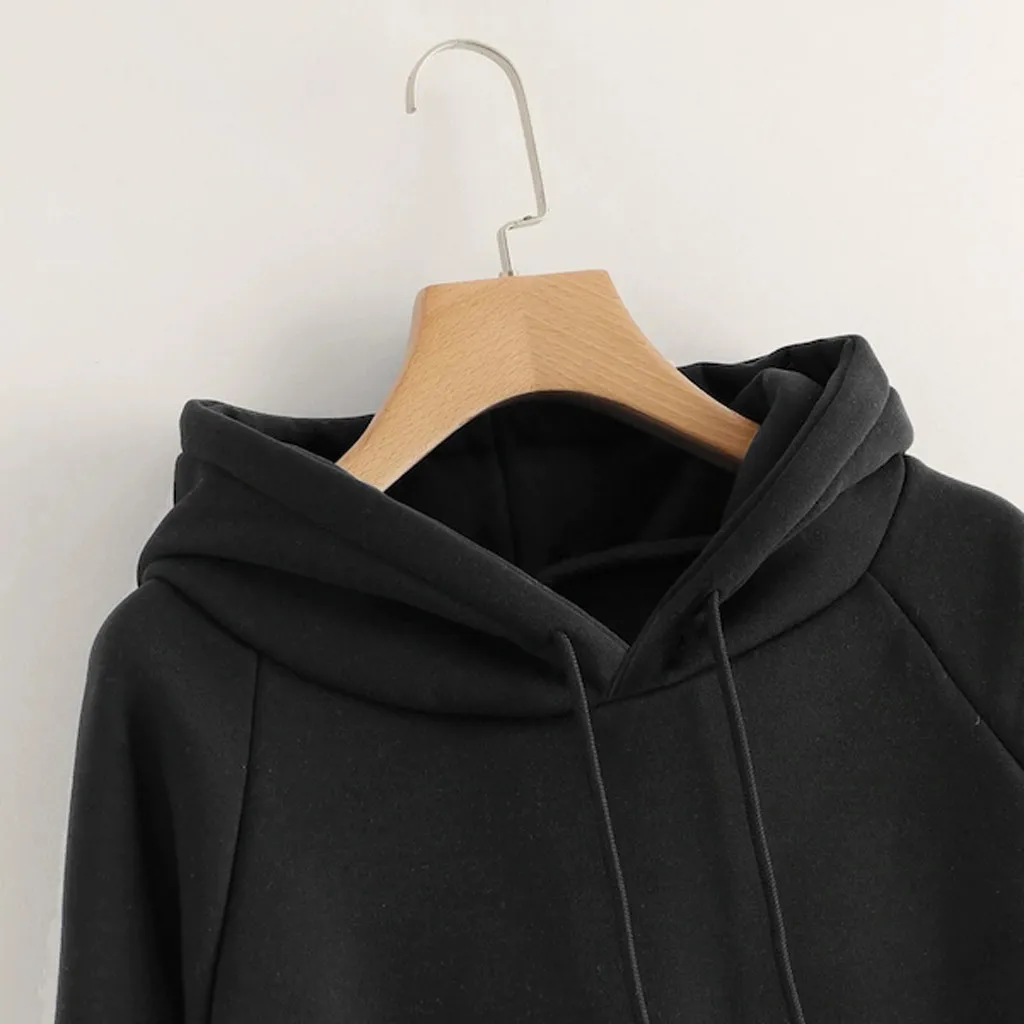 Женский Повседневный Однотонный пуловер с капюшоном и карманами, свитшот с длинным рукавом