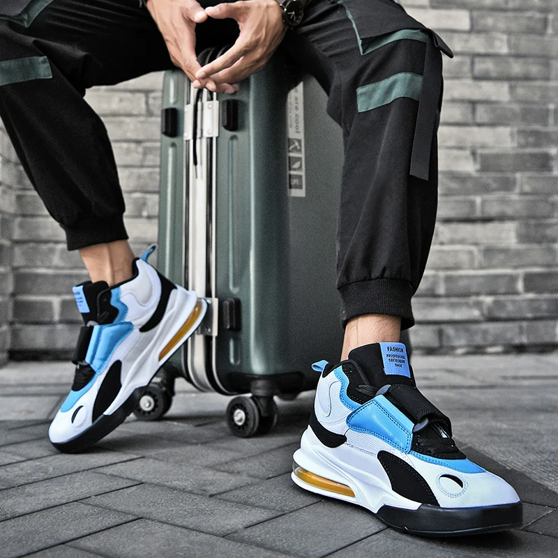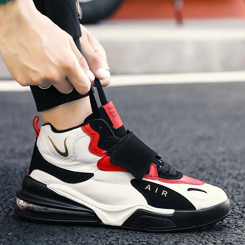 Зимняя обувь с высоким берцем мужские кроссовки 9908 с воздушной подушкой; Дизайнерская обувь для баскетбола; Черный цвет; 43 Крытый тренировочный спортивный брендовая Великолепная обувь; кеды мужские; Размер 45