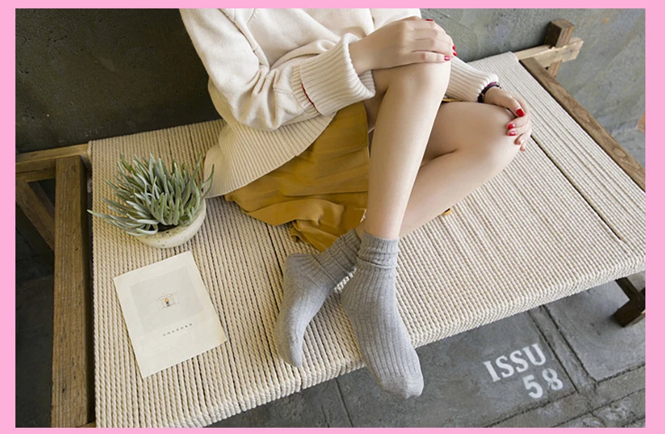 Носки женские хлопковые однотонные, повседневные короткие носки в стиле Харадзюку, 10 цветов, черные, бежевые, зеленые, желтые, винно-красные, весна-лето-осень