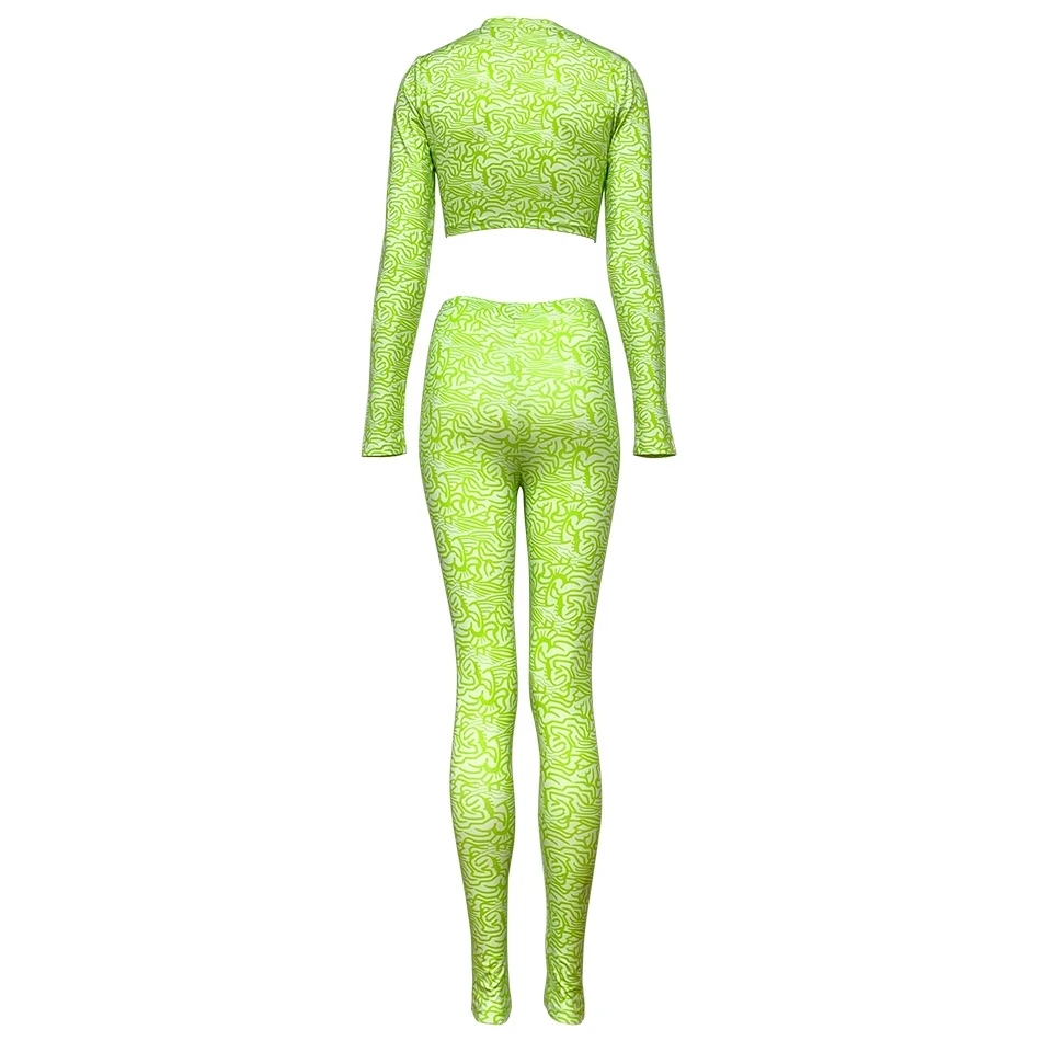 Женский Повседневный Спортивный костюм Kylie Jenner, Зеленый Топ с длинным рукавом и круглым вырезом, модный дизайнерский костюм из двух предметов