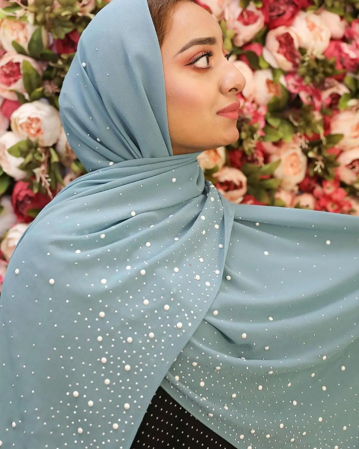 Роскошный перламутровый шифоновый хиджаб под шарф с сверлом мусульм...