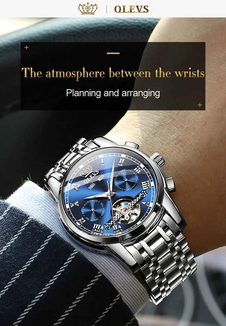 Мужские часы ведущей марки OLEVS, автоматические механические часы,...