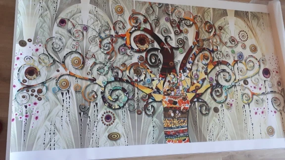 Это произошло намного быстрее, чем они сказали, хорошо упаковано. Очень хорошо выглядит, и у меня осталось только повесить его, в моем случае я сделаю рамку с некоторыми лентами, так как приходит только свернутая пленка