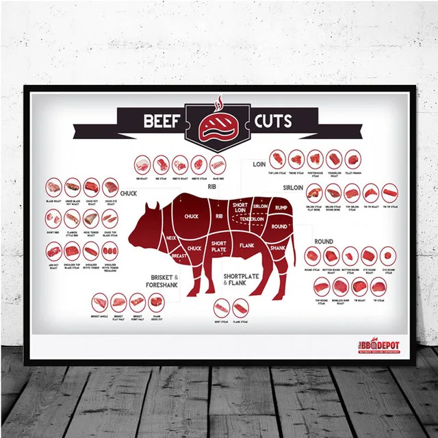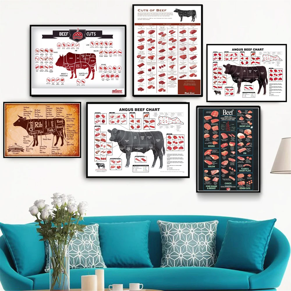 Крупного рогатого скота мясника диаграммы говядина порезы животных схема мясо картины на холсте скандинавский HD печать плакатов декор картины для Спальня