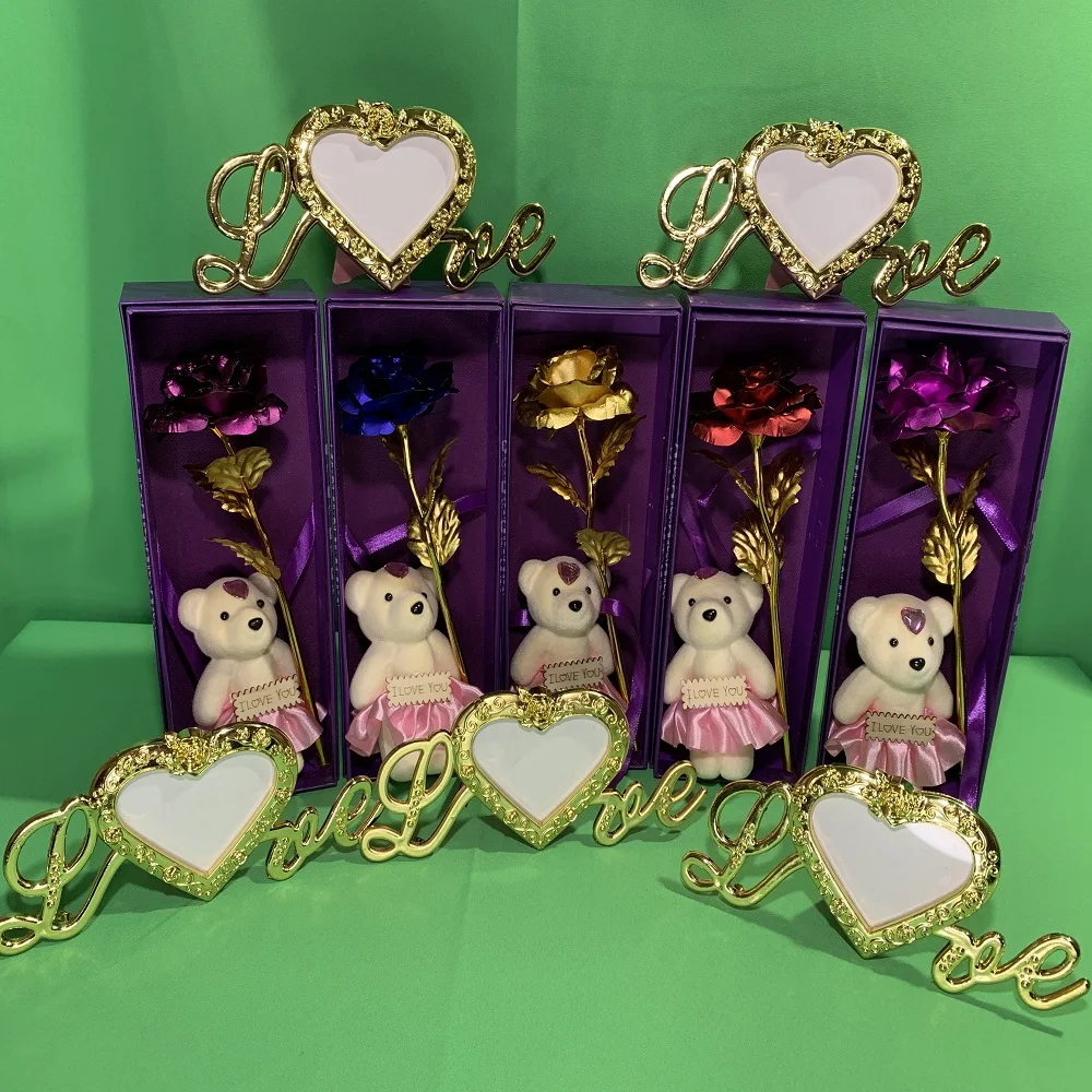 Роза 24K День Святого Валентина 8 марта Подарок Роза декоративная вечный цветок 24k золото I LOVE YOU фоторамка