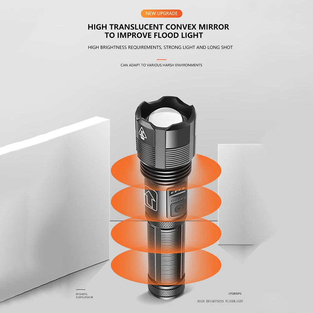 Фонарик для охоты и кемпинга, водонепроницаемый светодиодный перезаряжаемый легкий, простой в переноске, XHP50, 1000 люмен