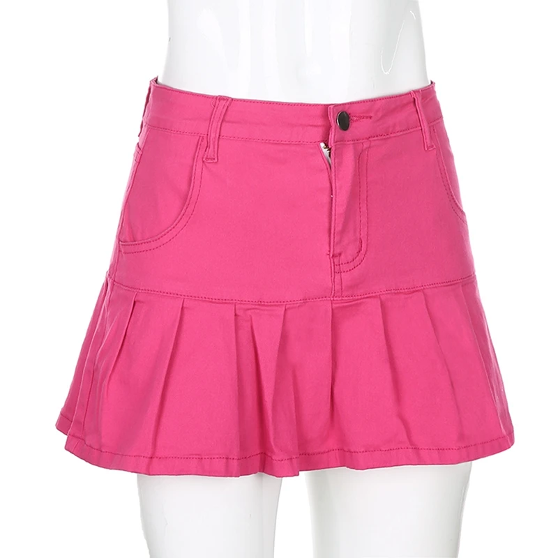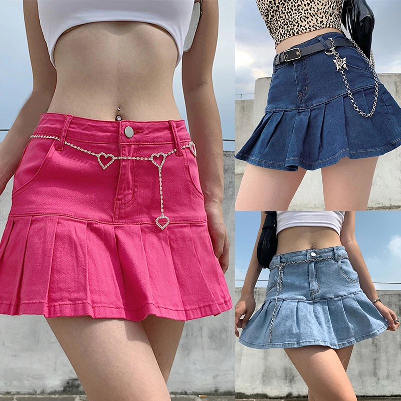 Женские джинсовые юбки с высокой талией, плиссированные юбки на молнии, мини-юбки, уличная Нижняя юбка Y2K