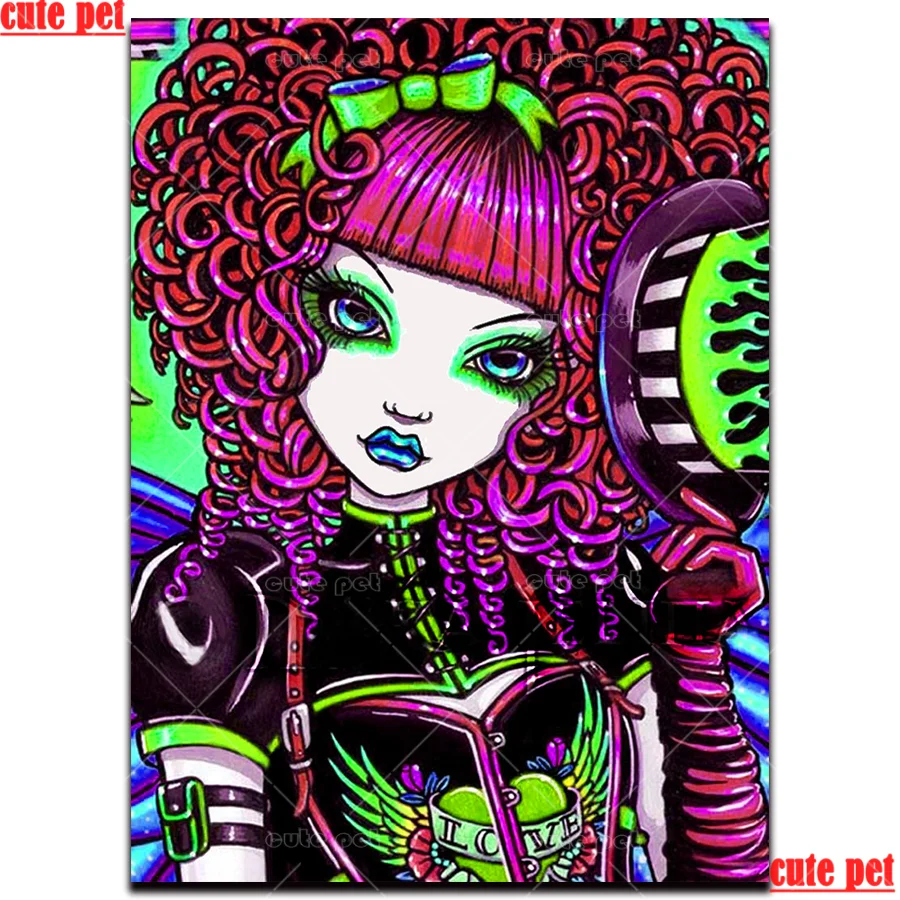 5d алмазная живопись в стиле панк, мультяшная девушка, сделай сам, полная квадратная картина, Алмазная мозаика, стразы, художественный Декор